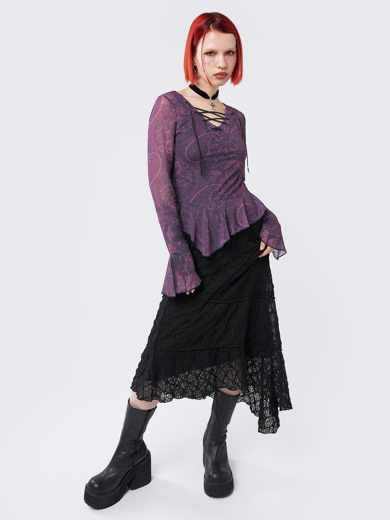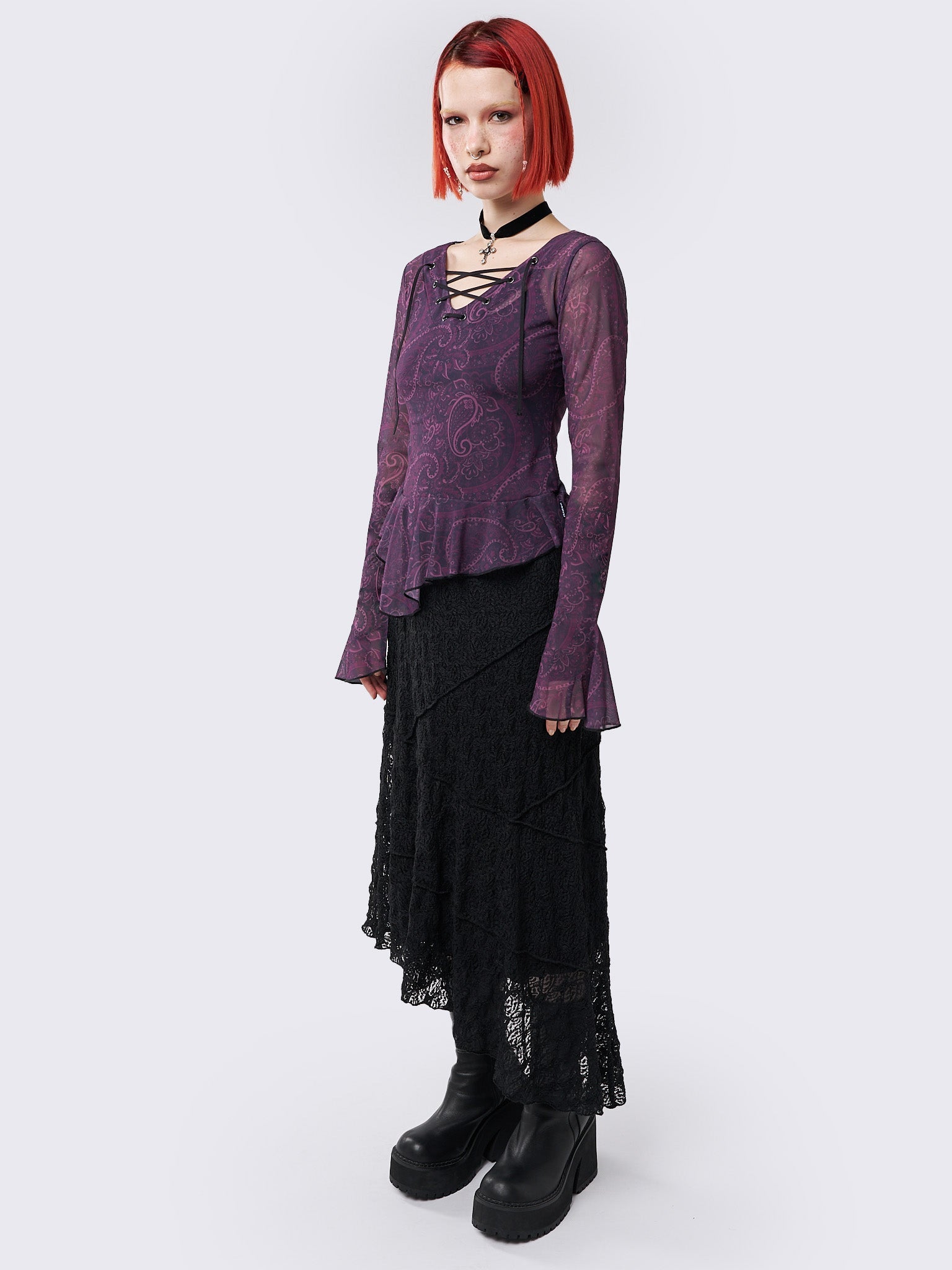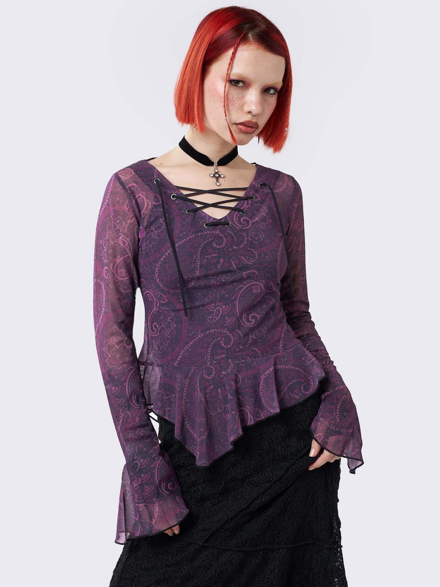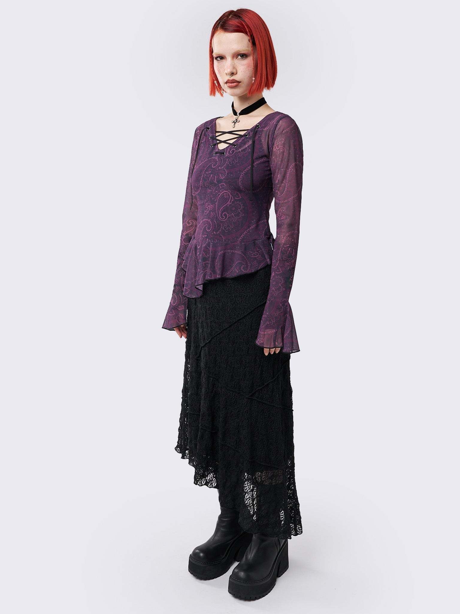 Winona Lace Up Flared Sleeve Top