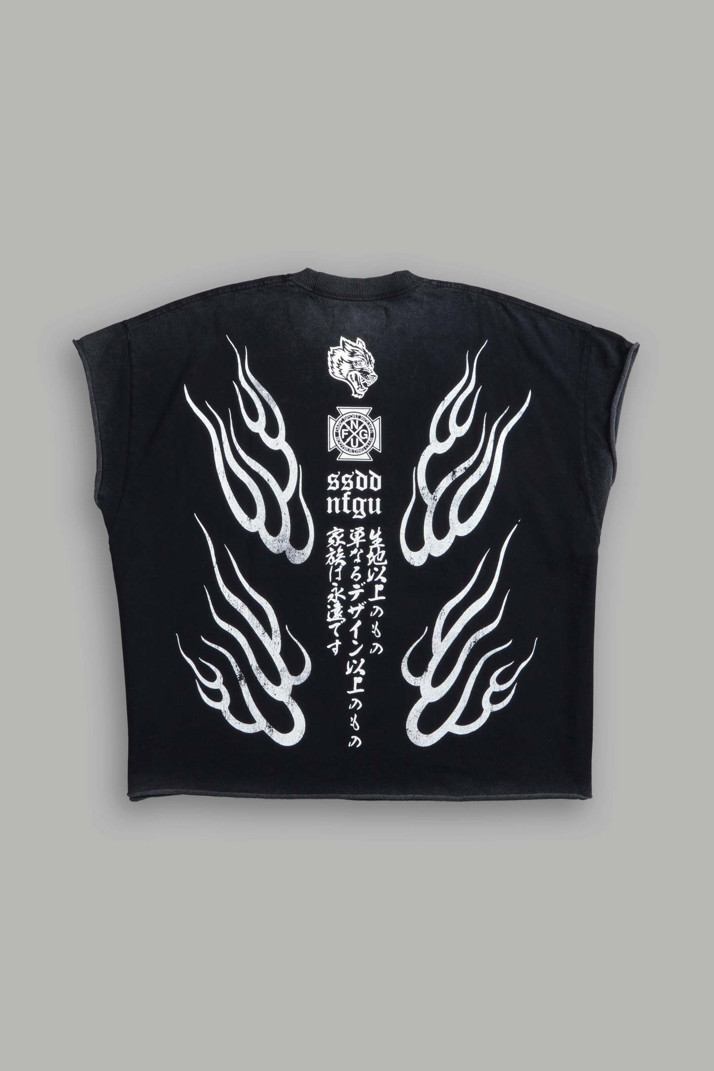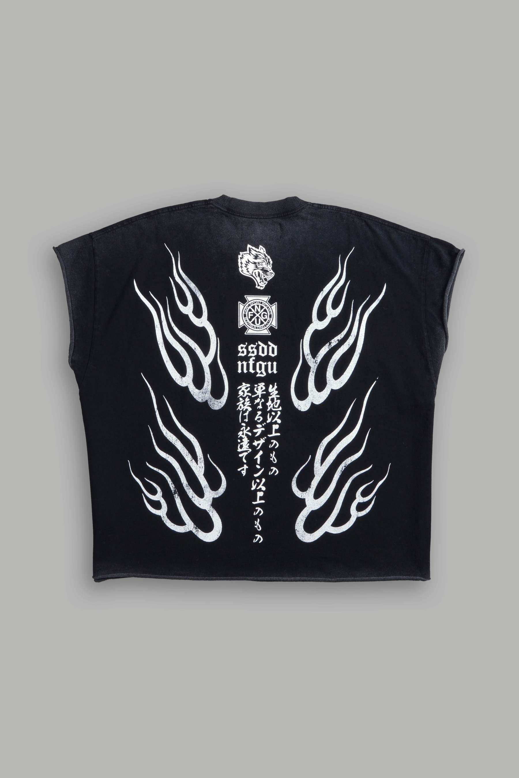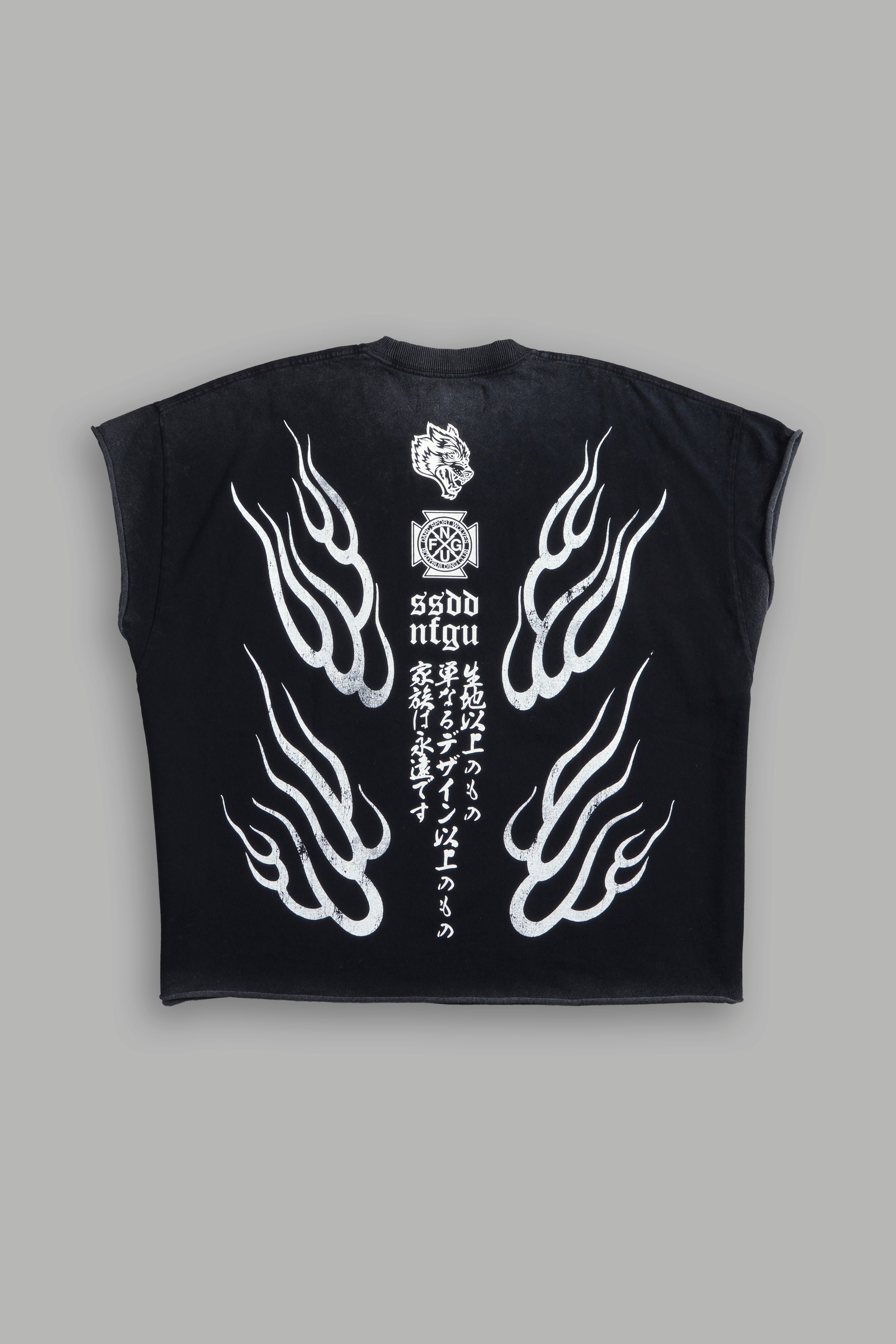 Oni Fire Grunge Cut-Off Tee in Black