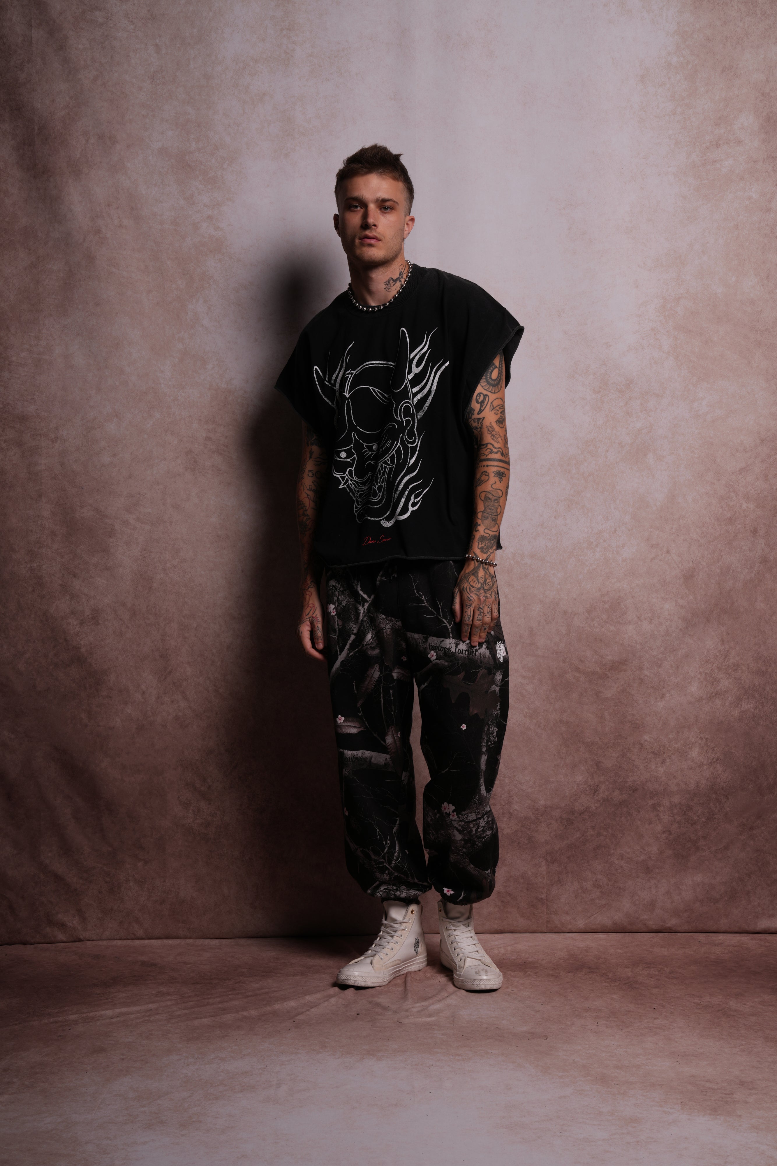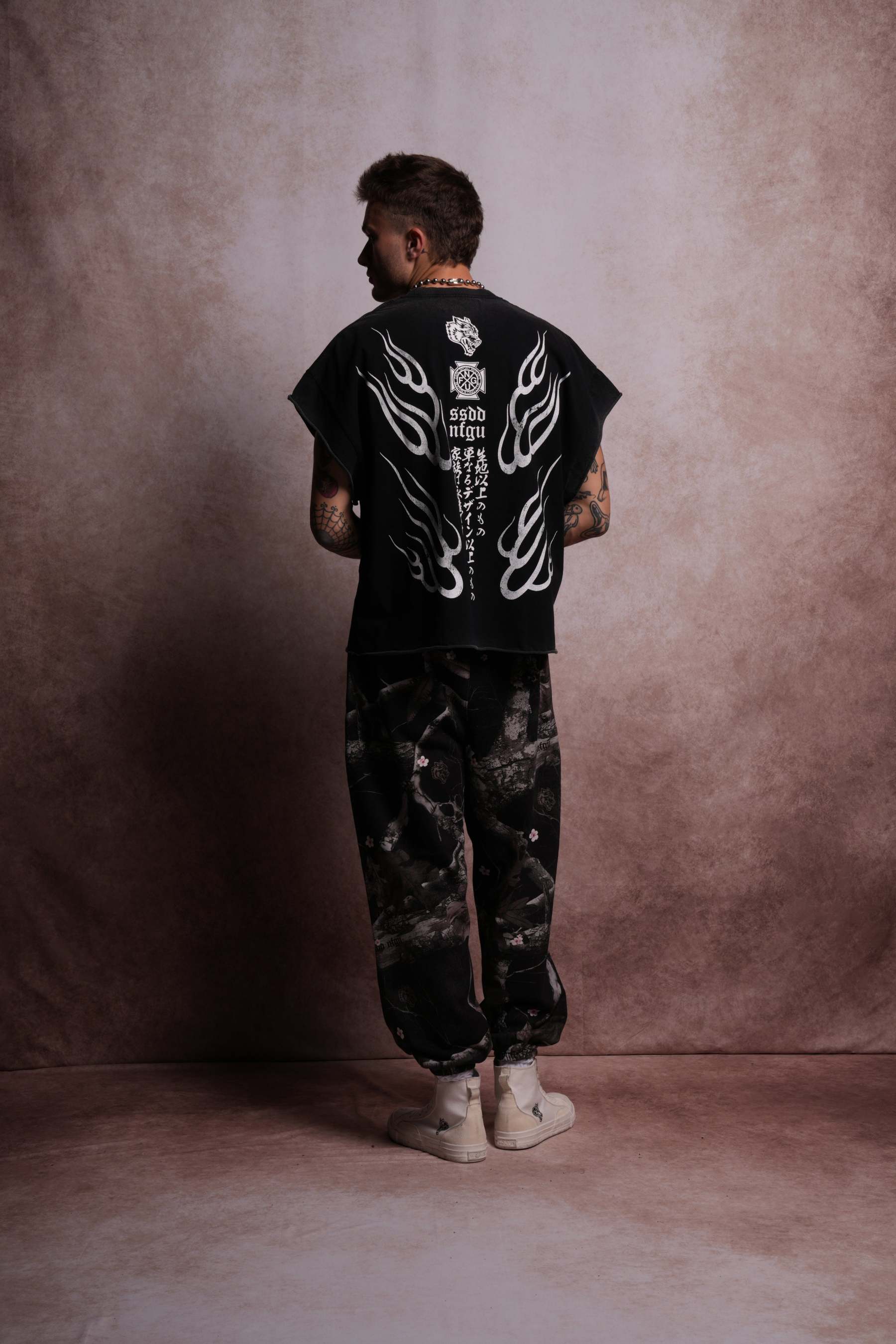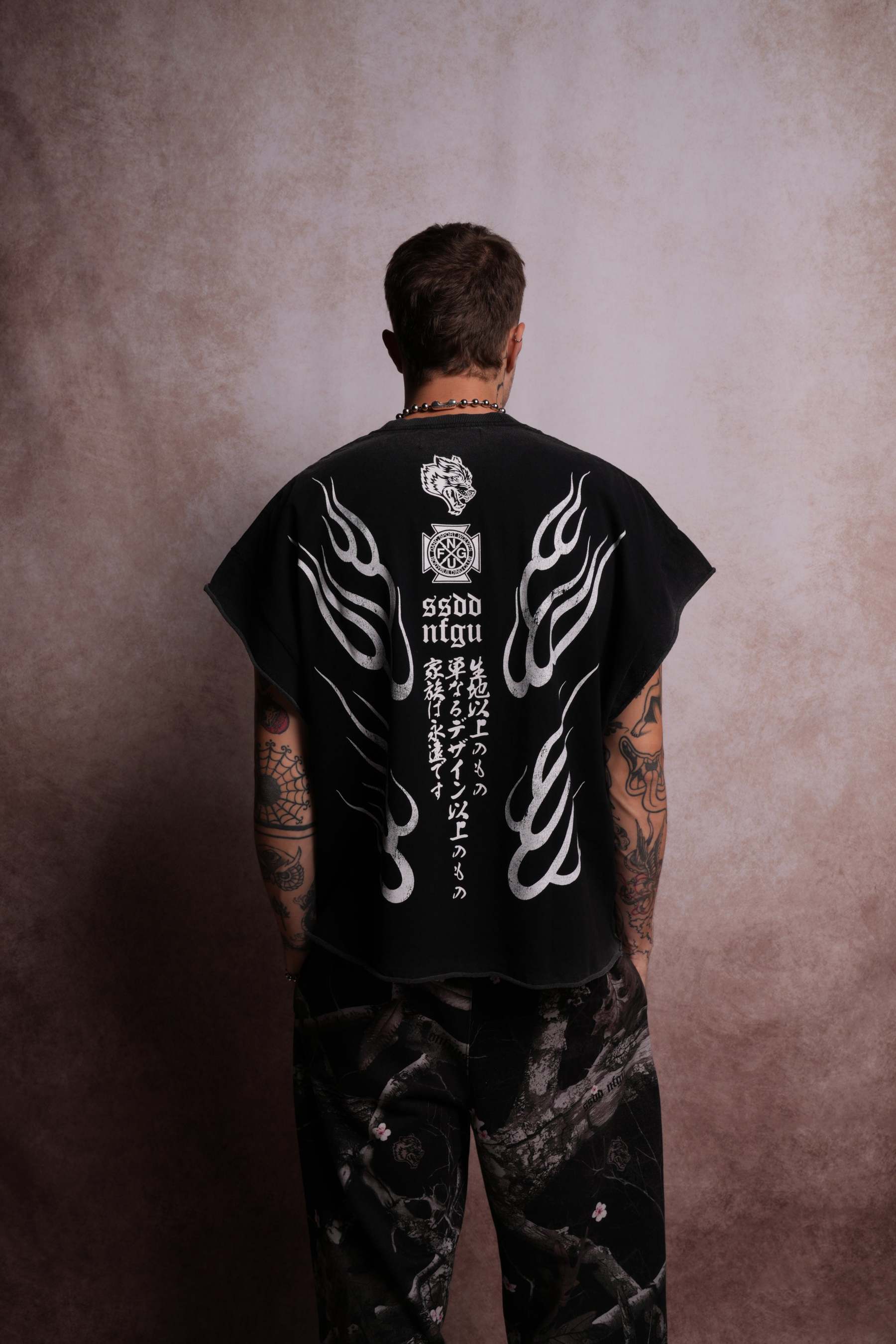 Oni Fire Grunge Cut-Off Tee in Black