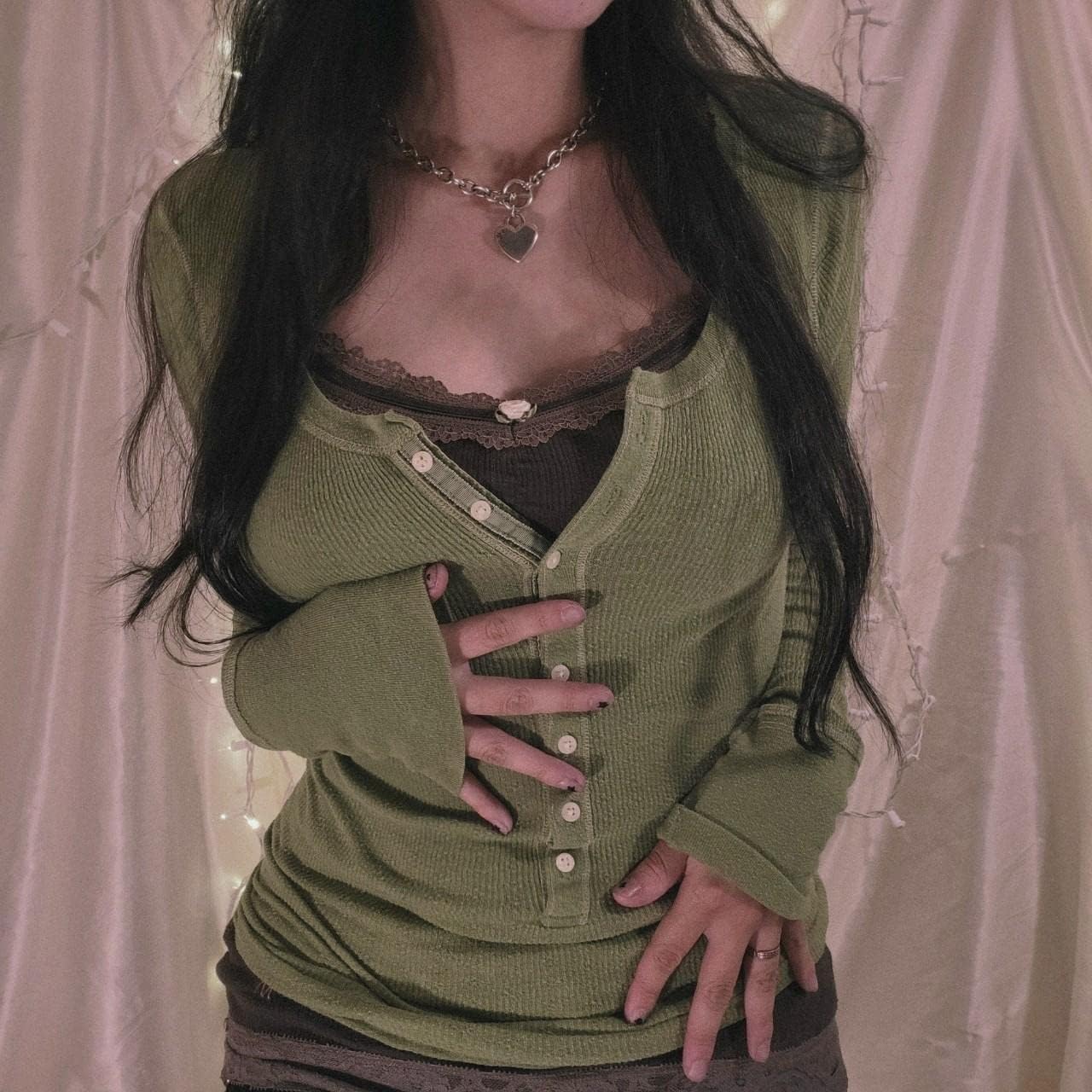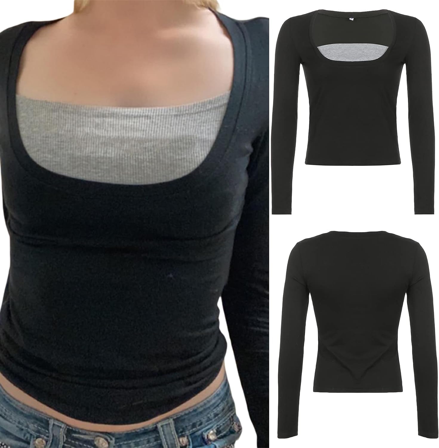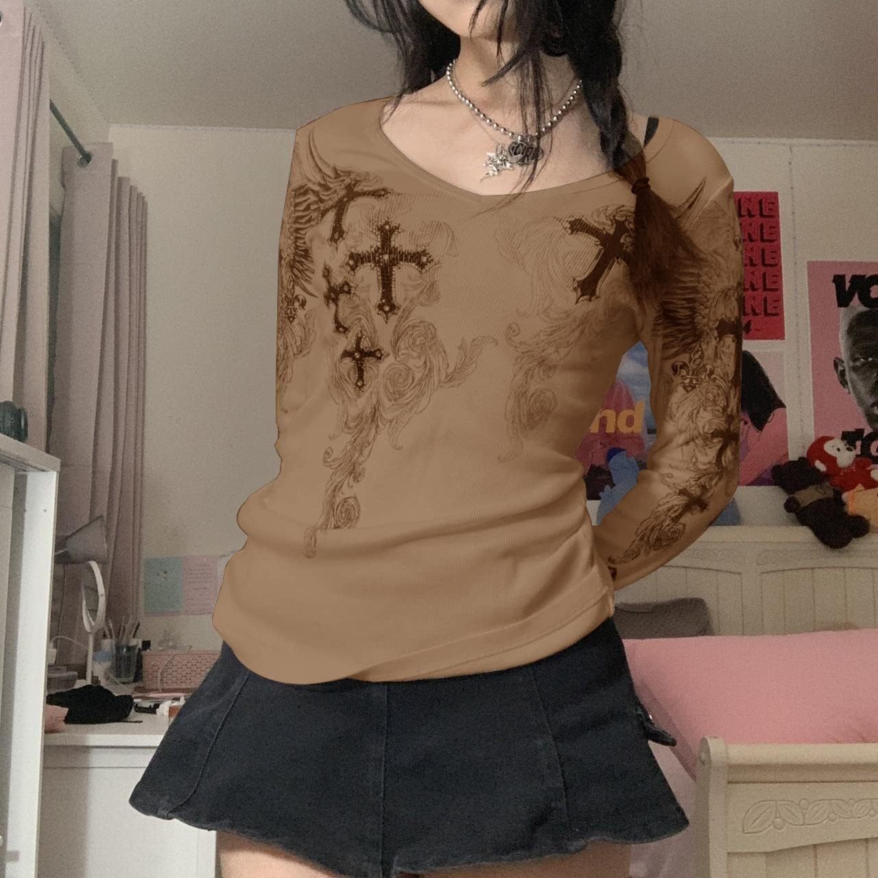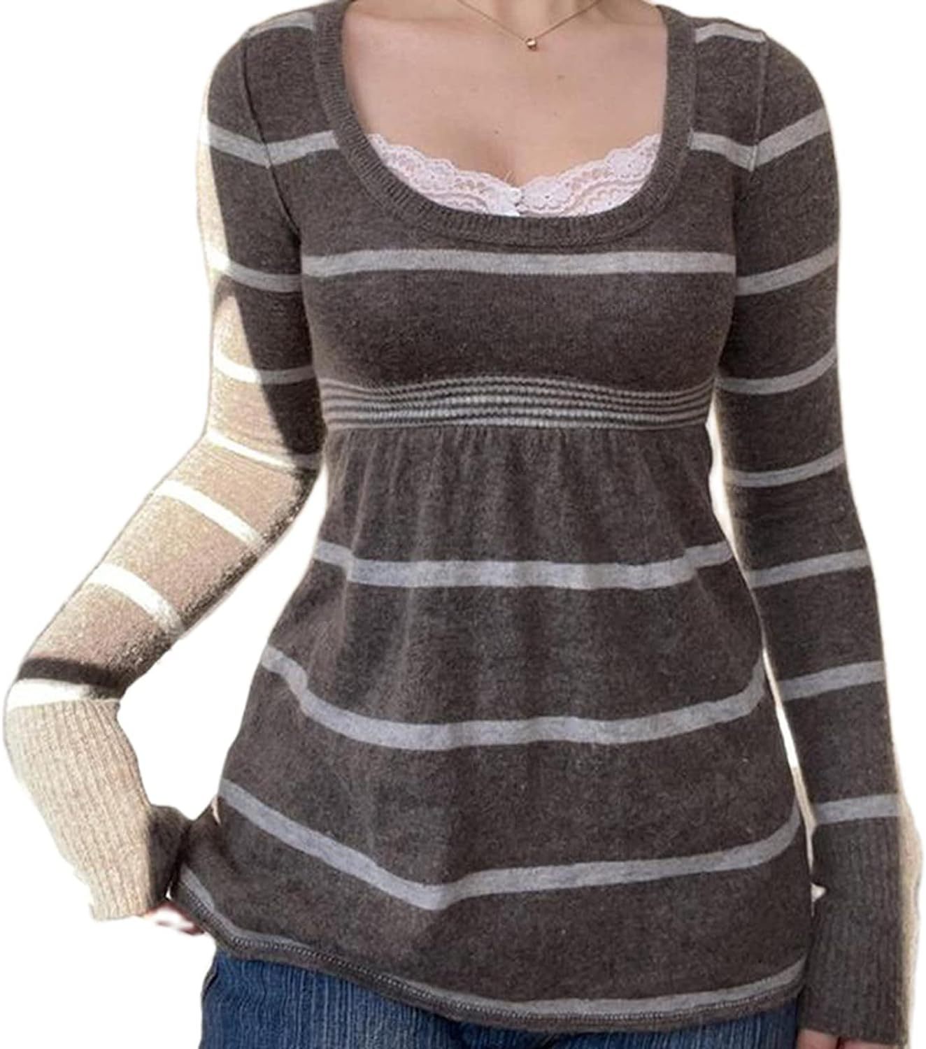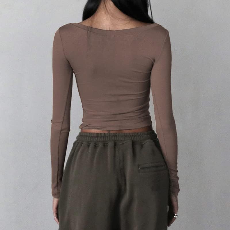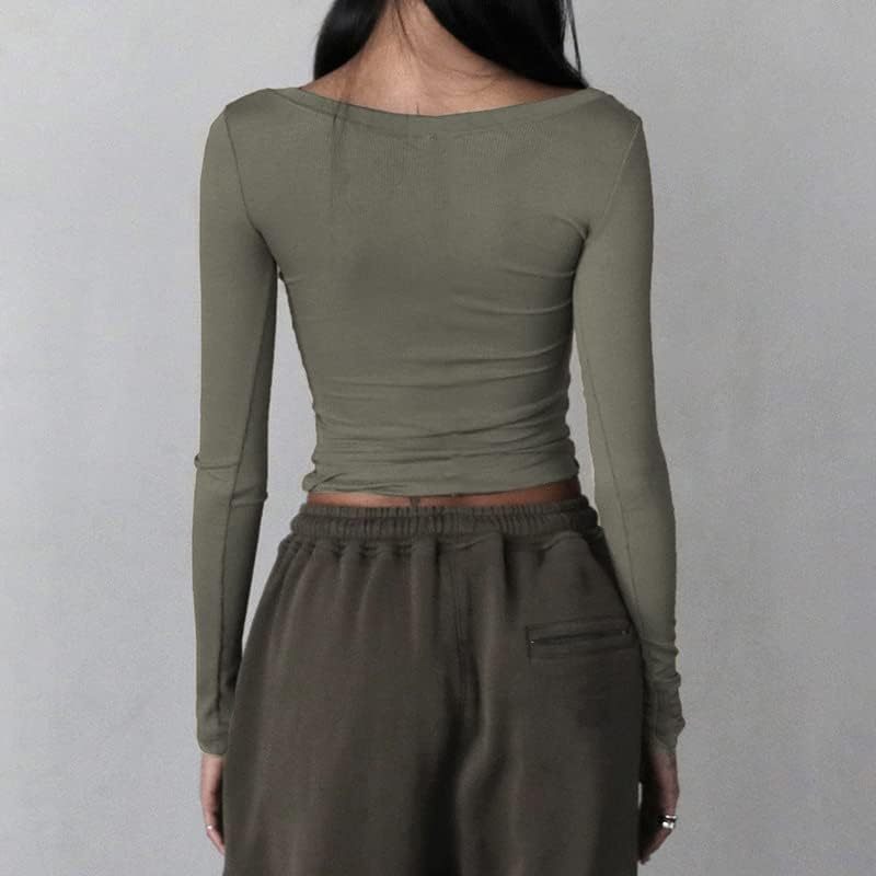 Women Y2K Long Sleeve Patchwork Lace Square Neck Crop Top Tshirt Slim Fit Harajuku Vintage Streetwear Blouse Tops
