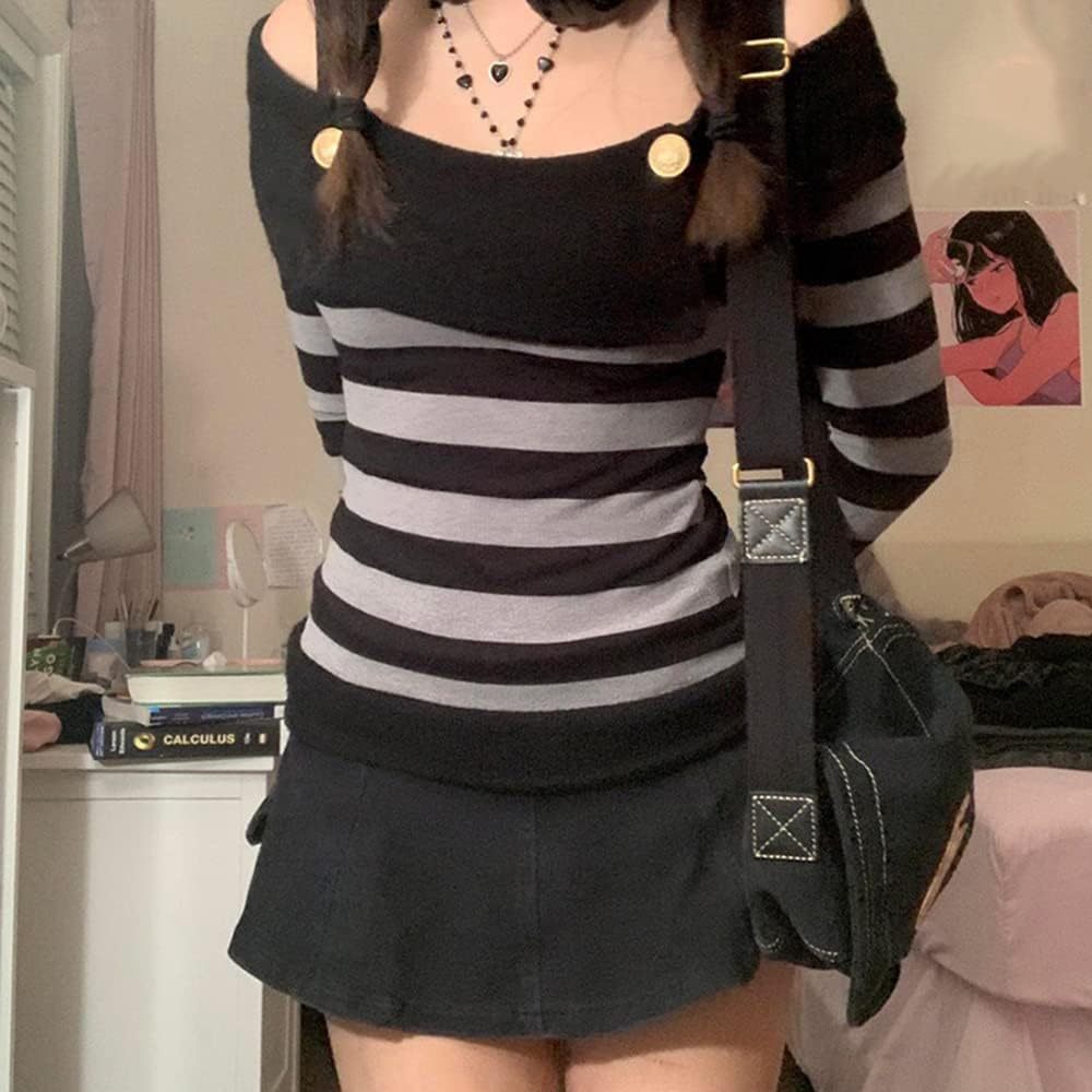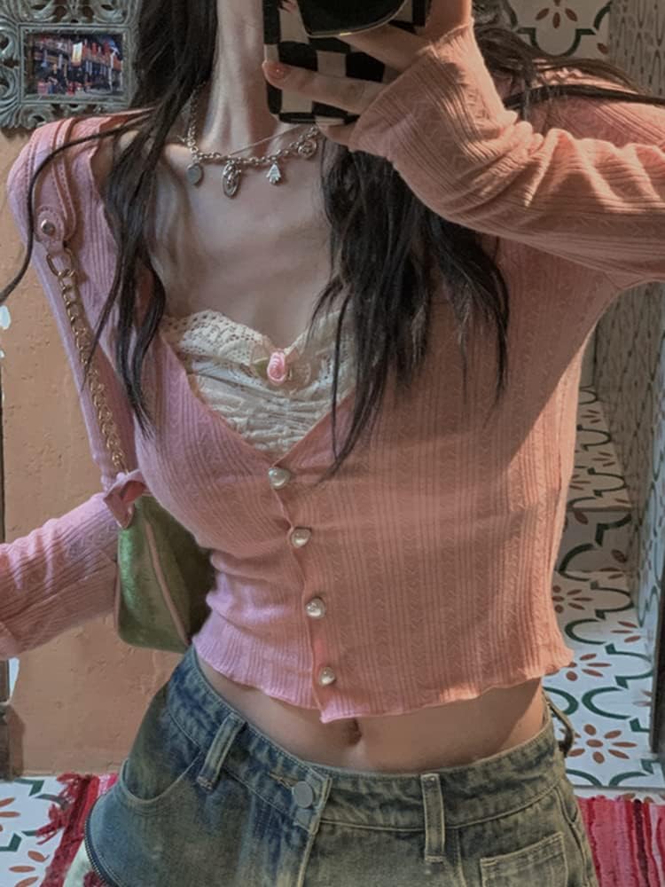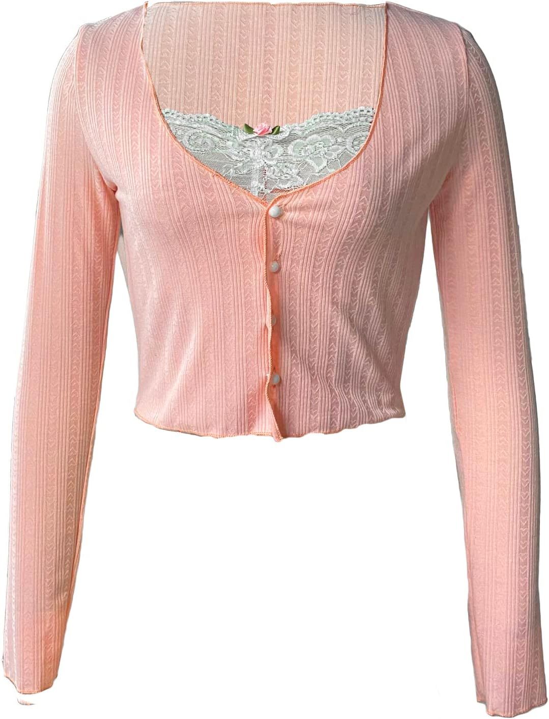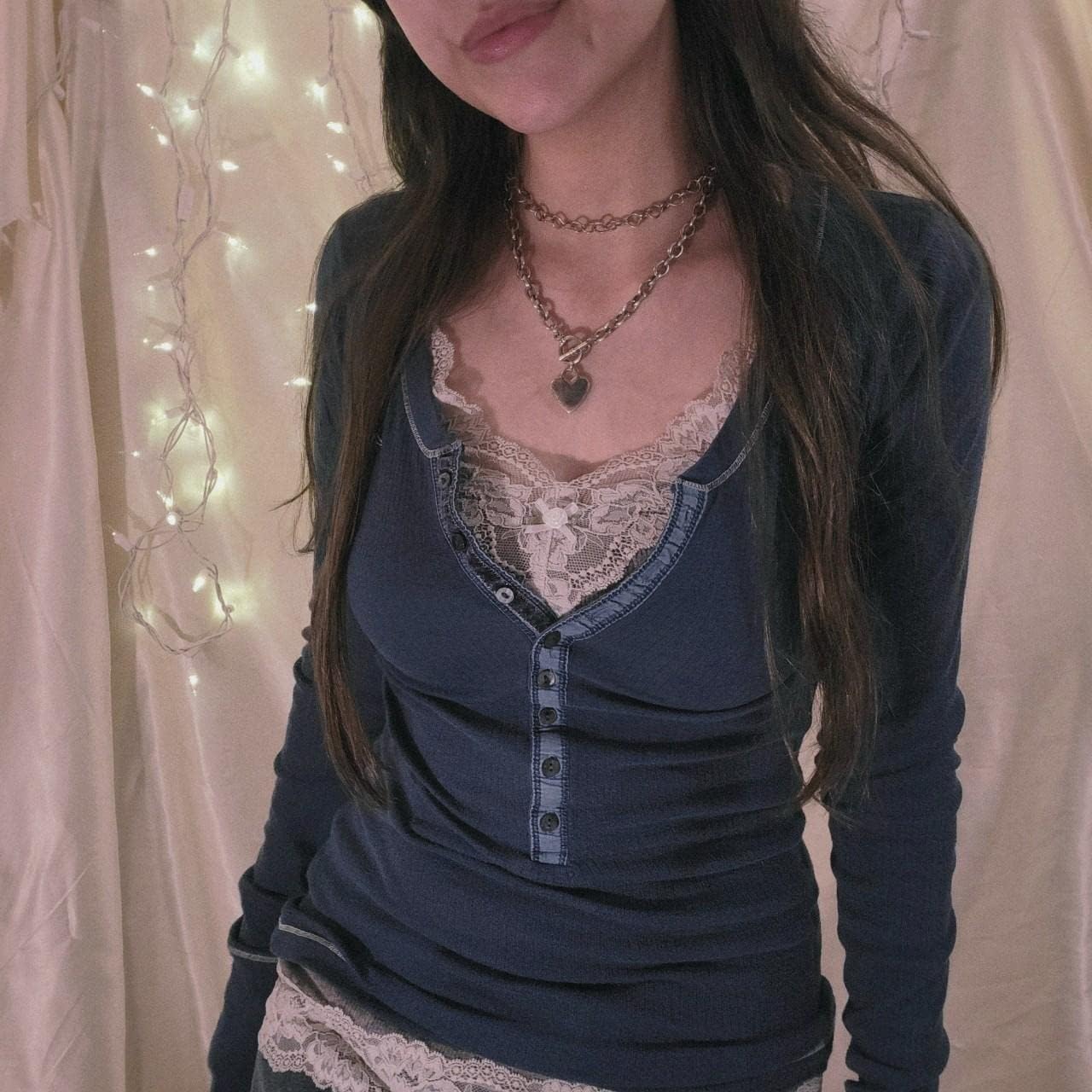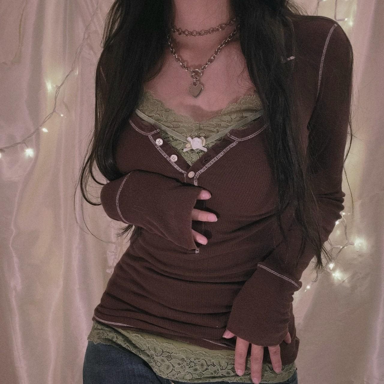 Women Y2K Long Sleeve Patchwork Lace Square Neck Crop Top Tshirt Slim Fit Harajuku Vintage Streetwear Blouse Tops