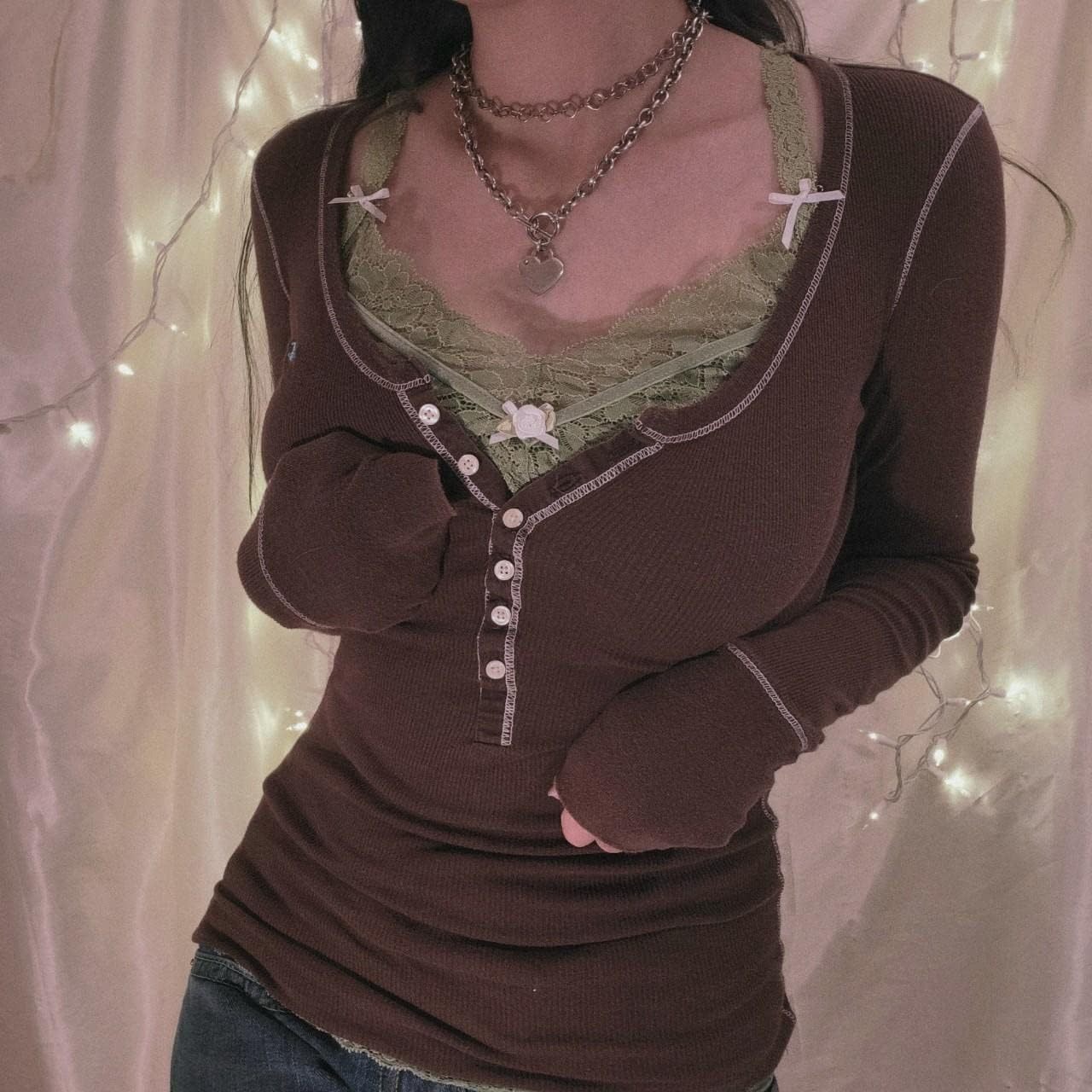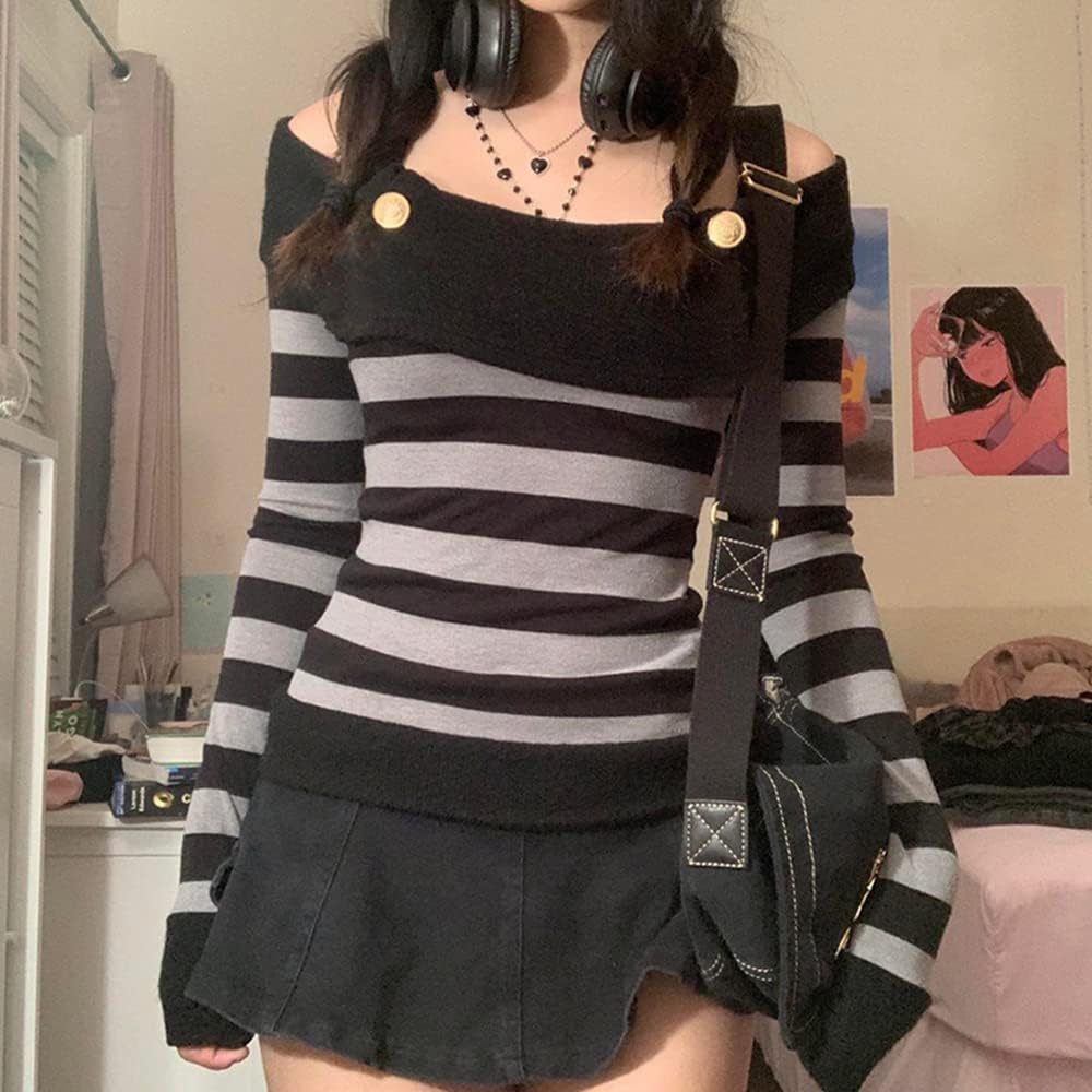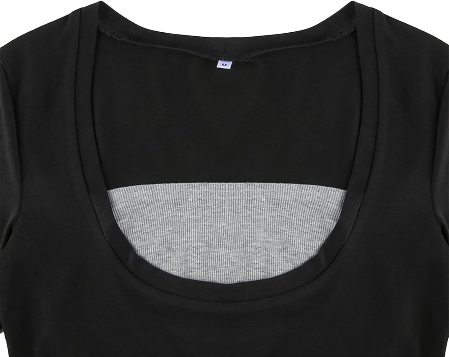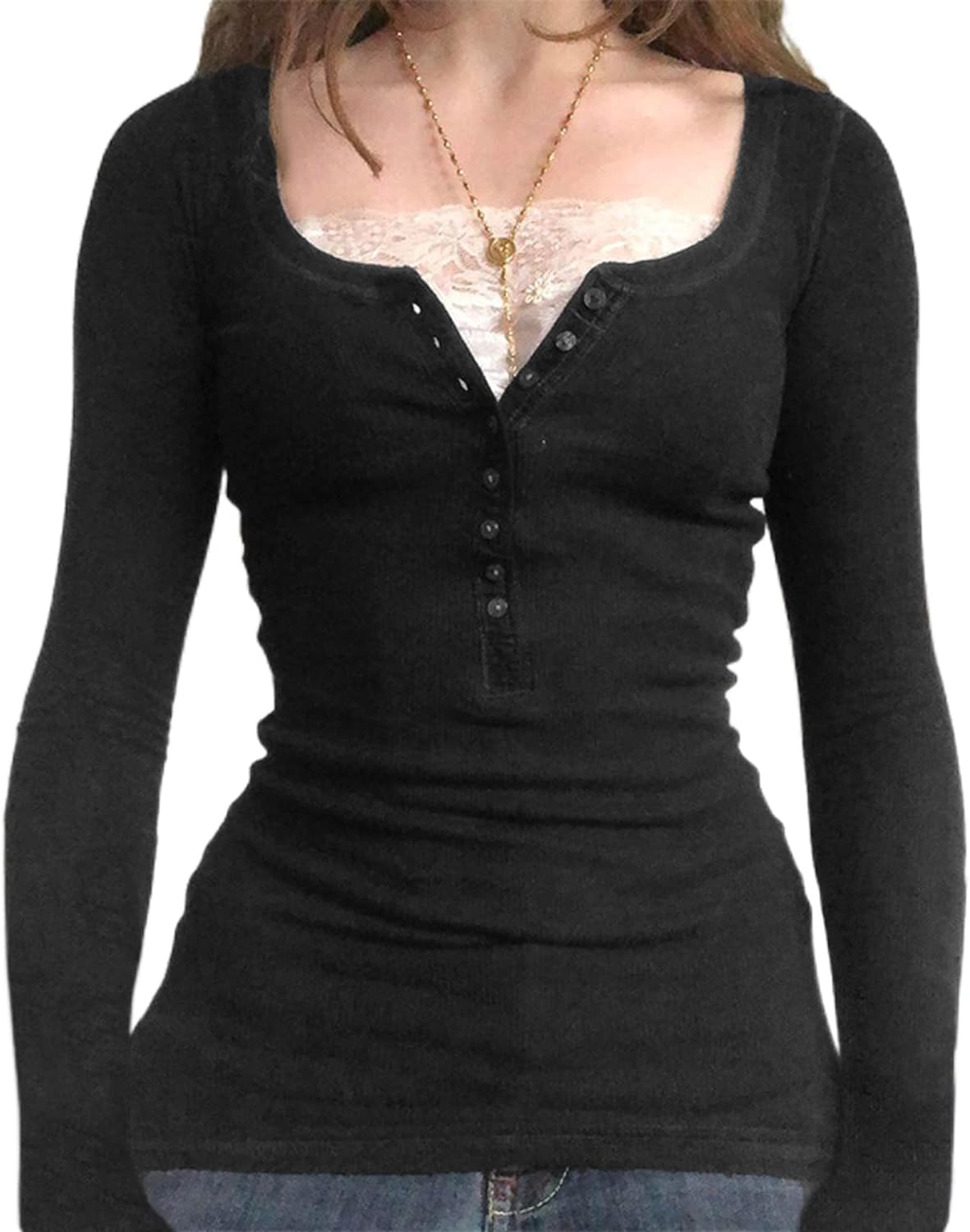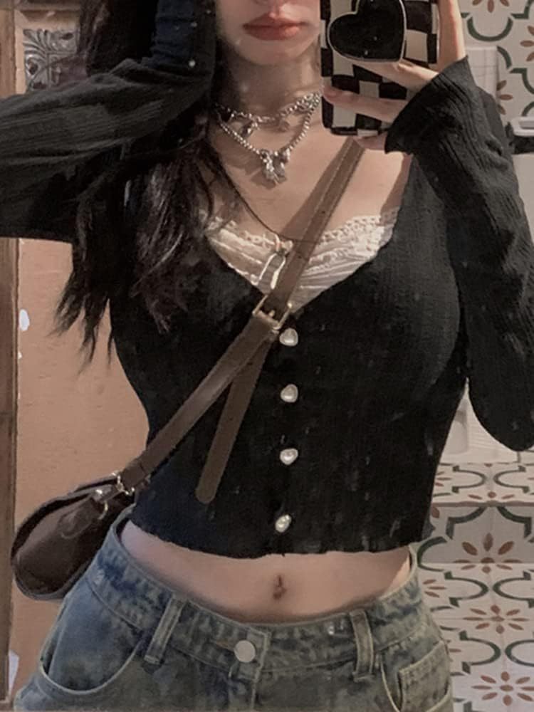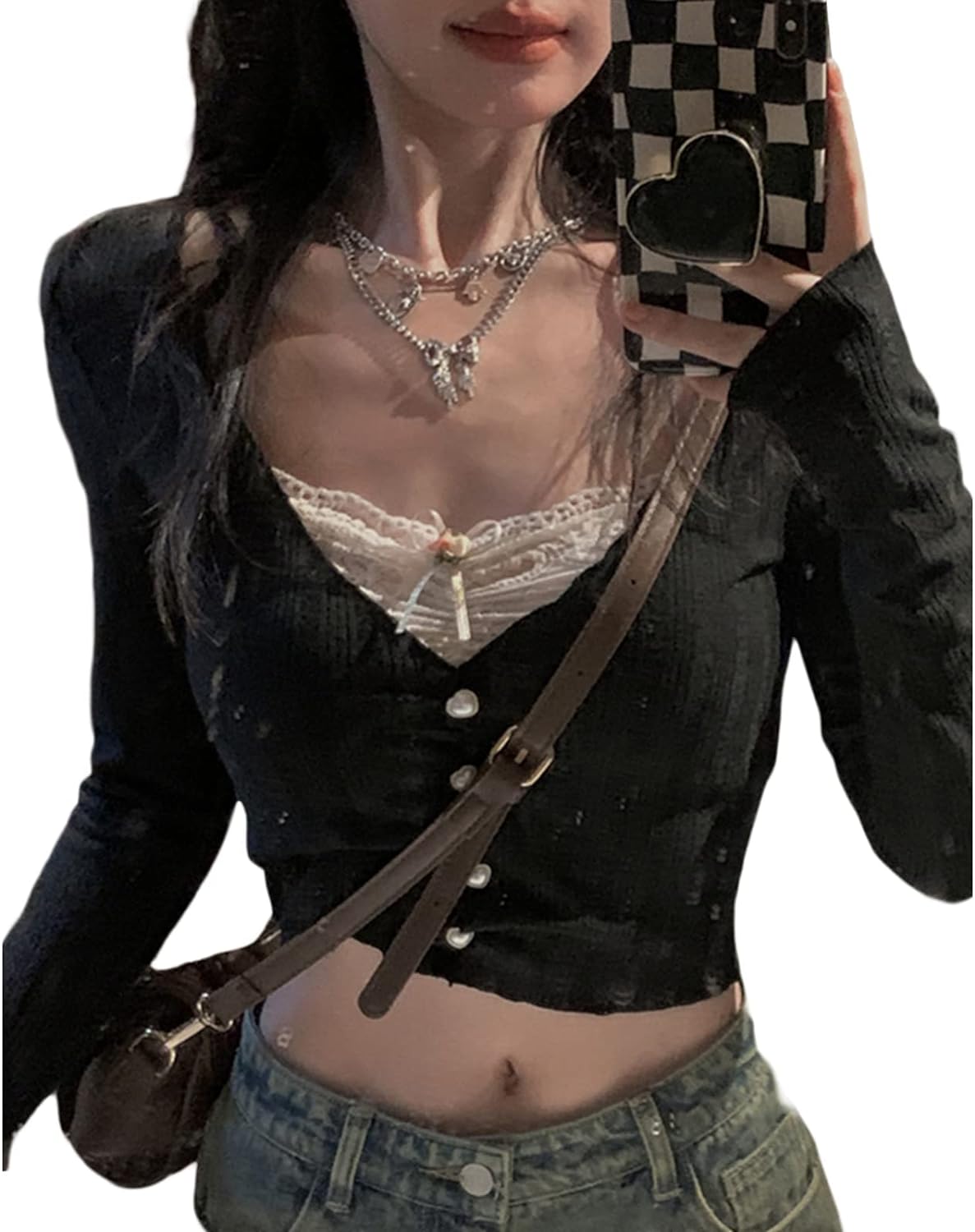 Women Y2K Long Sleeve Patchwork Lace Square Neck Crop Top Tshirt Slim Fit Harajuku Vintage Streetwear Blouse Tops