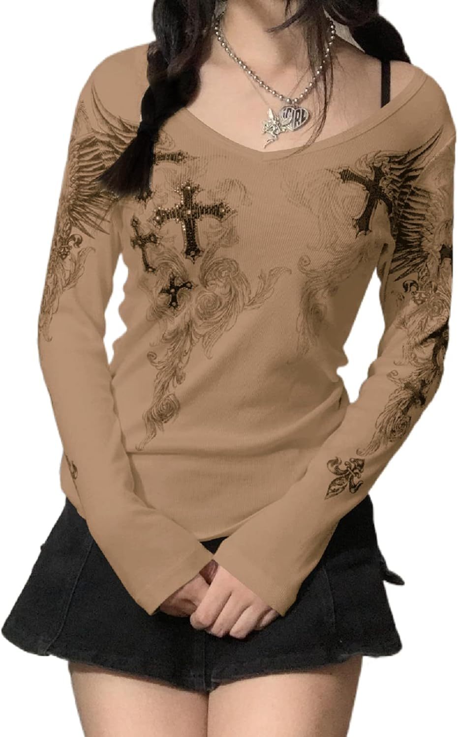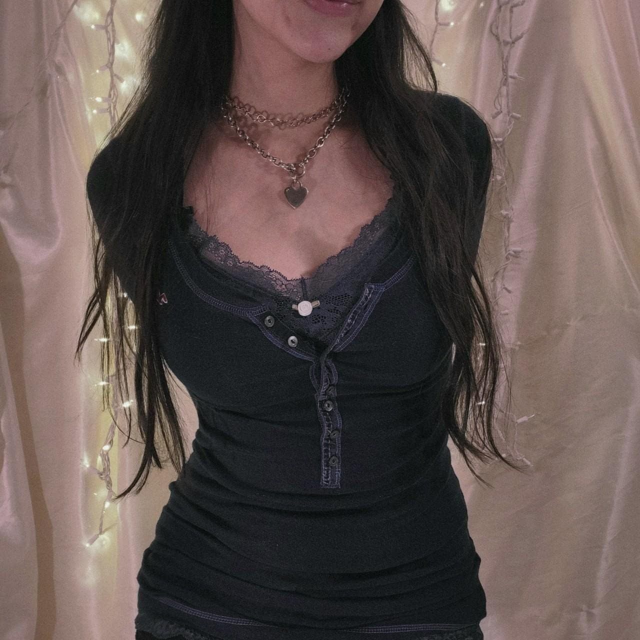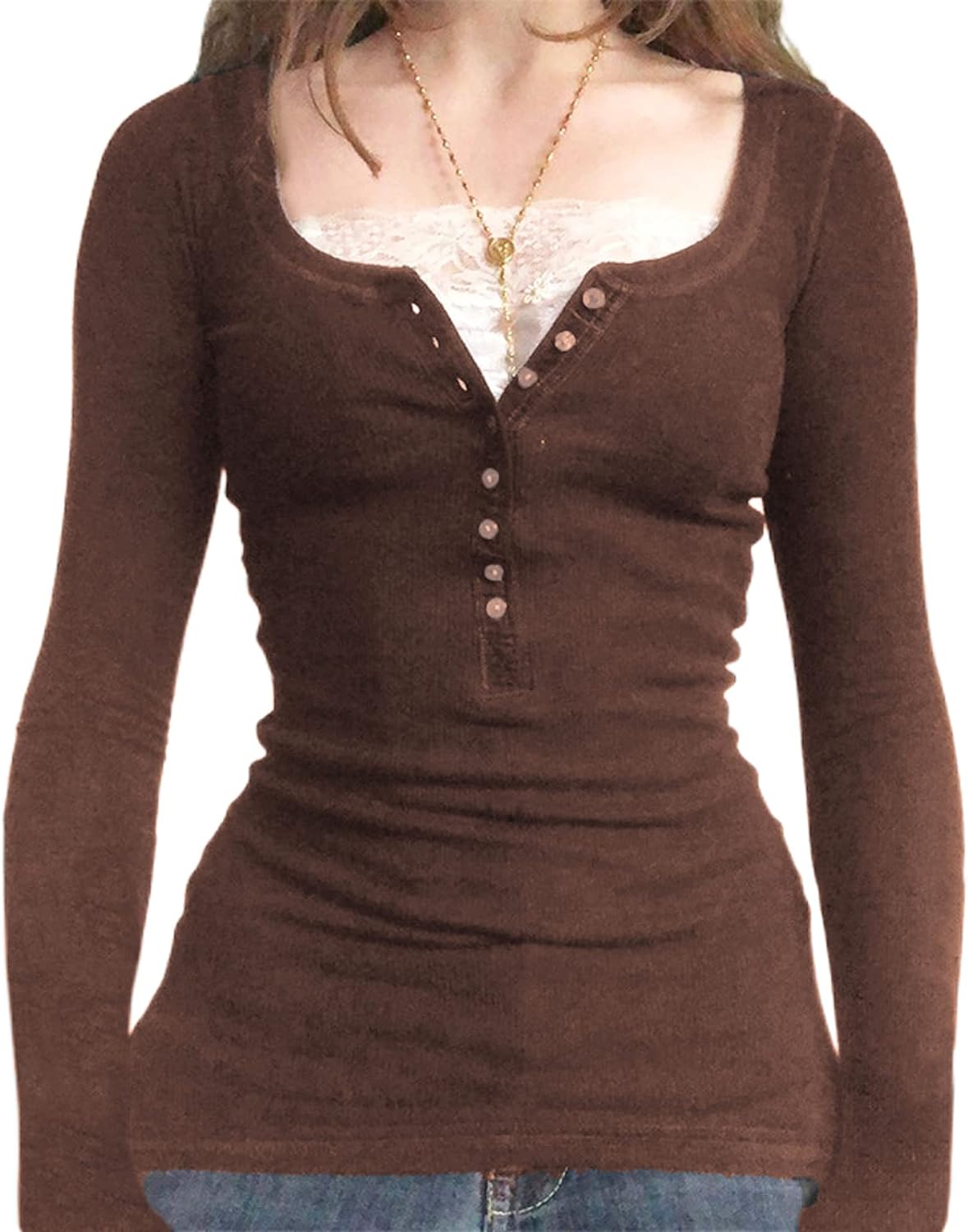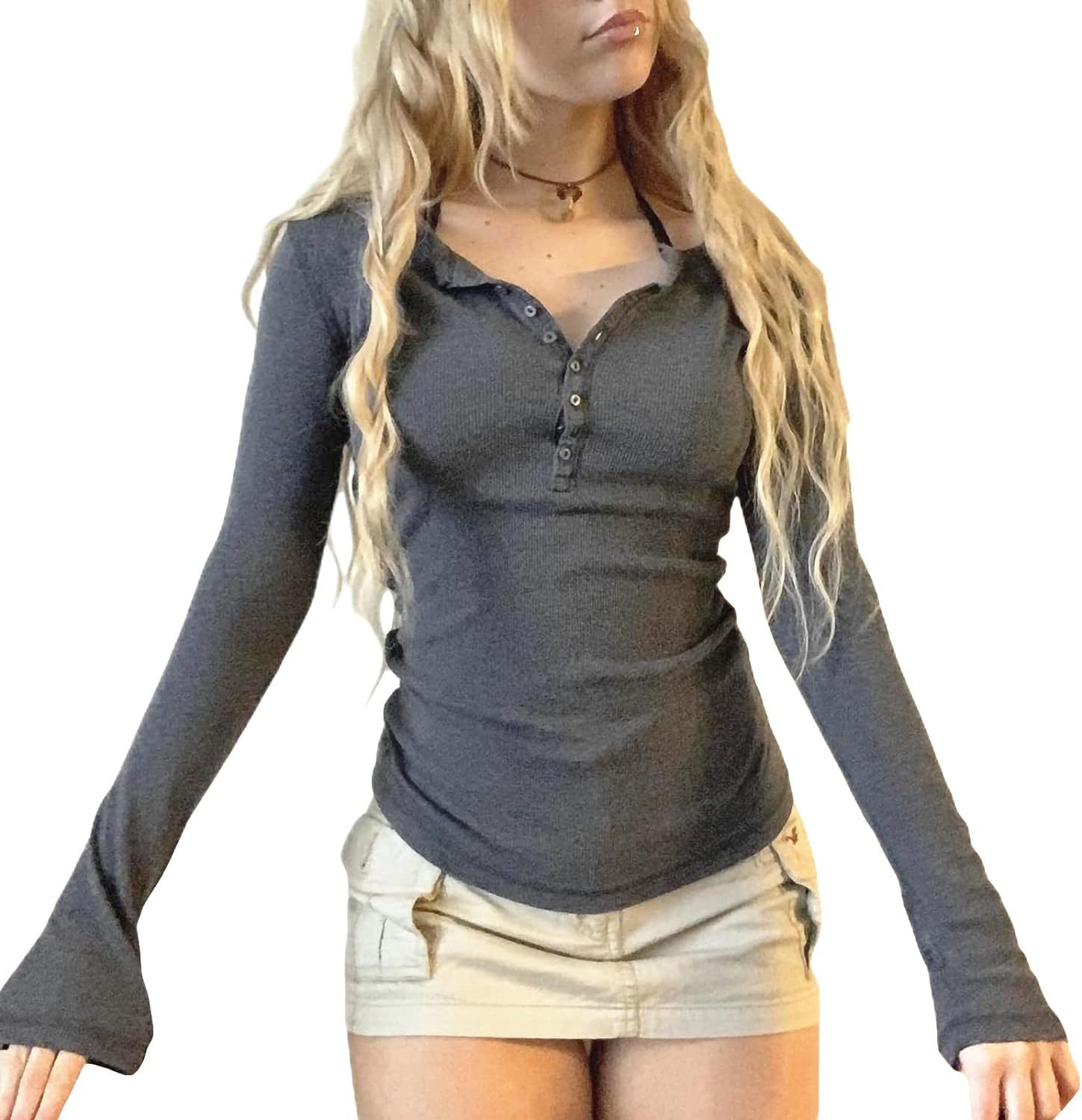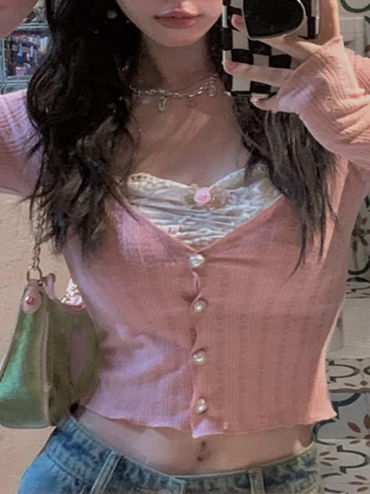 Women Y2K Long Sleeve Patchwork Lace Square Neck Crop Top Tshirt Slim Fit Harajuku Vintage Streetwear Blouse Tops
