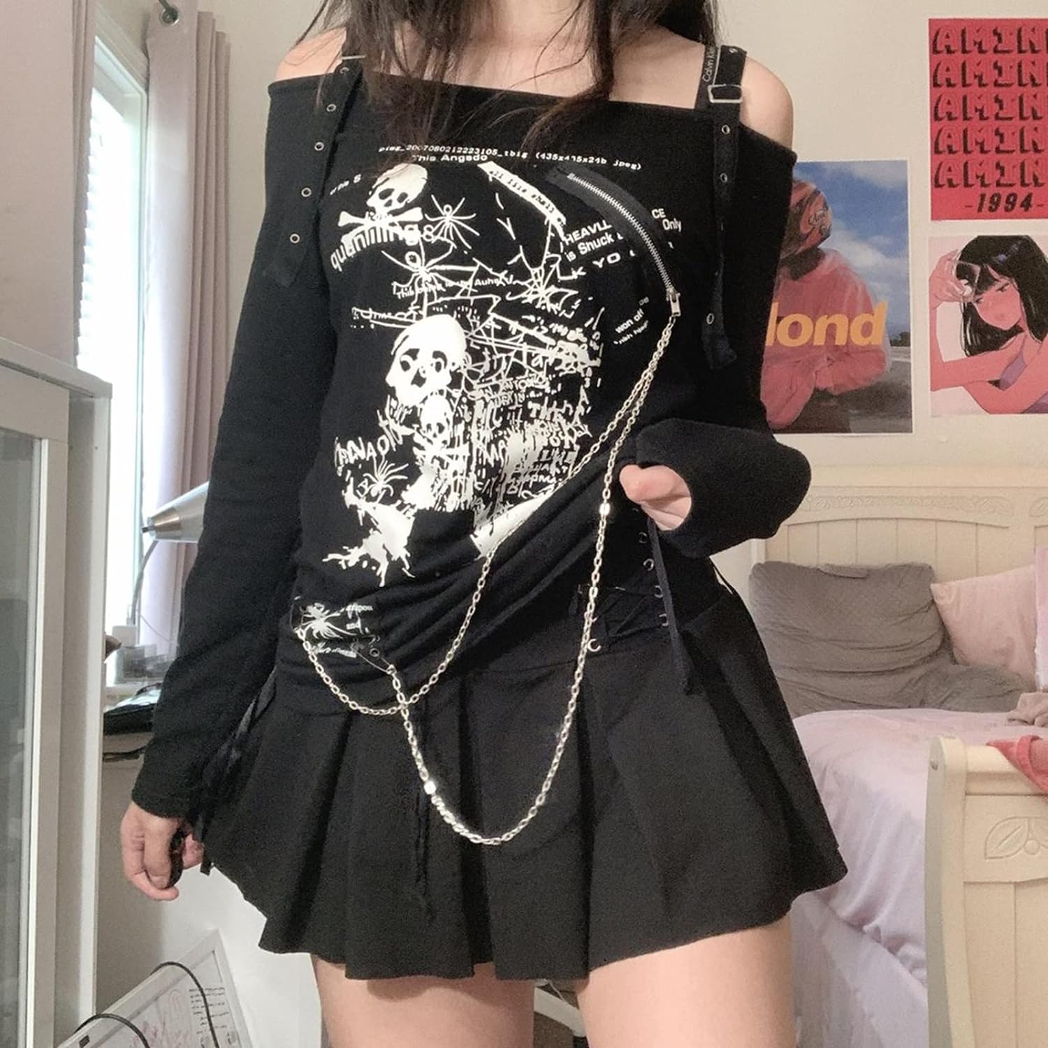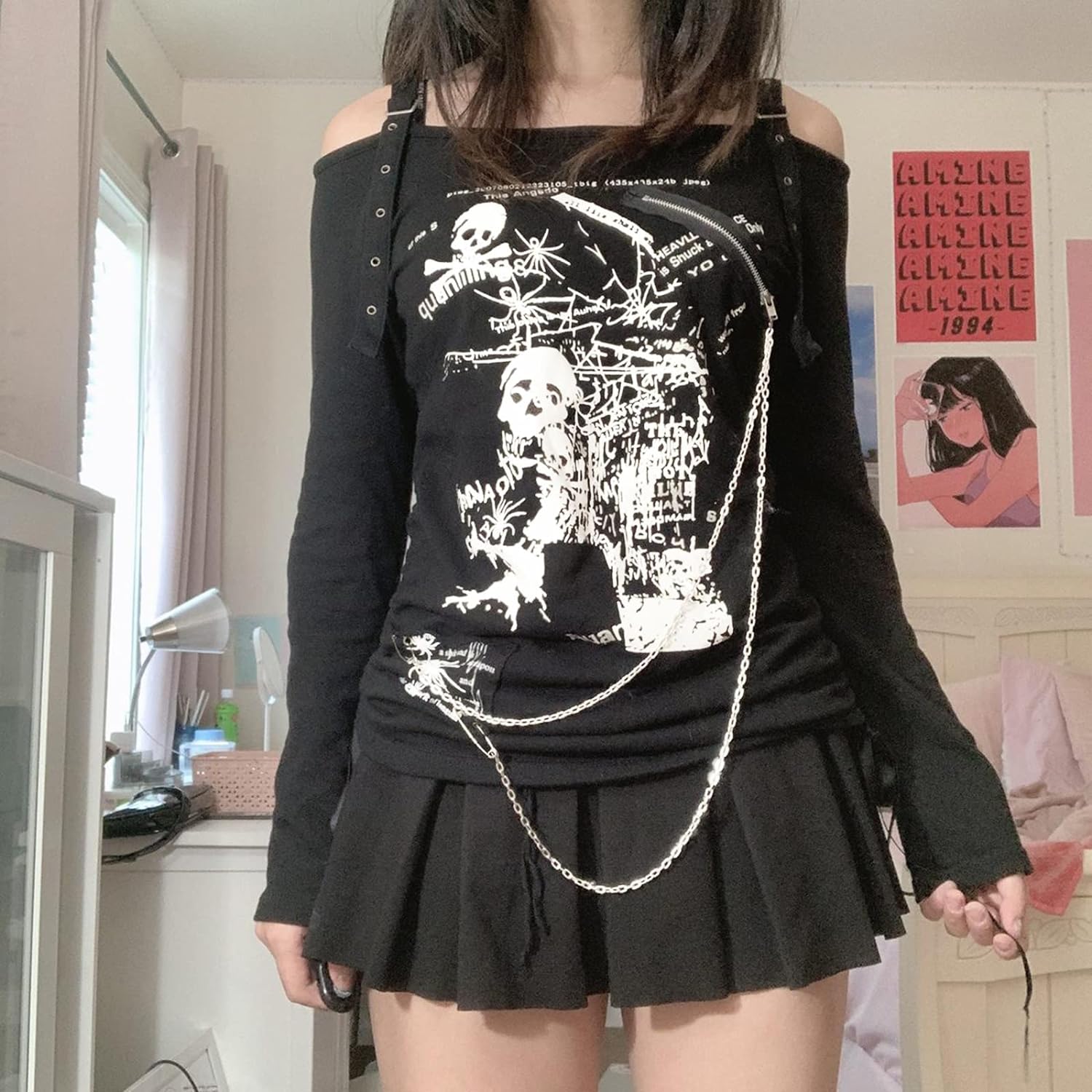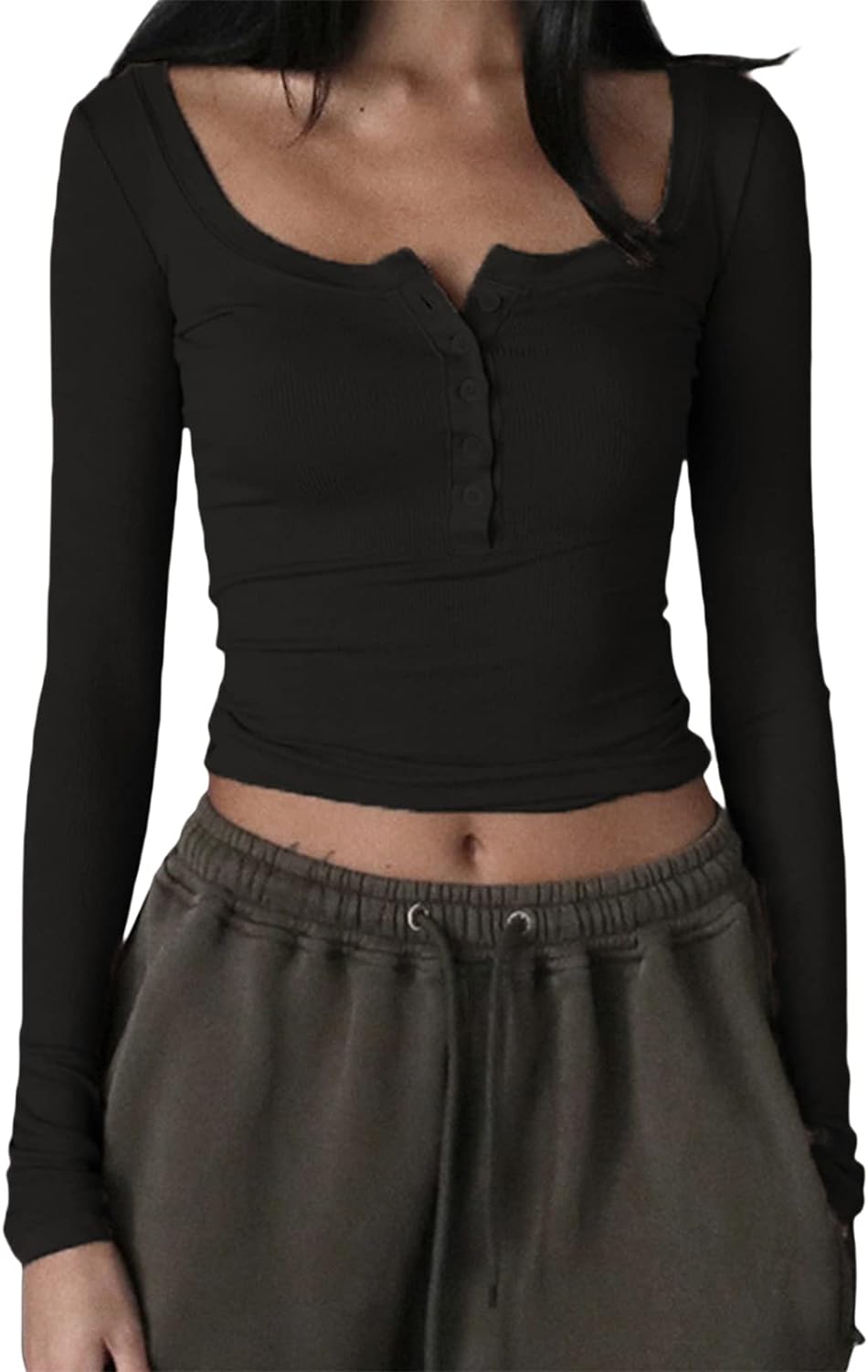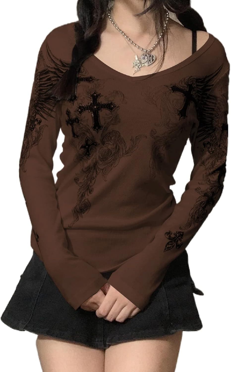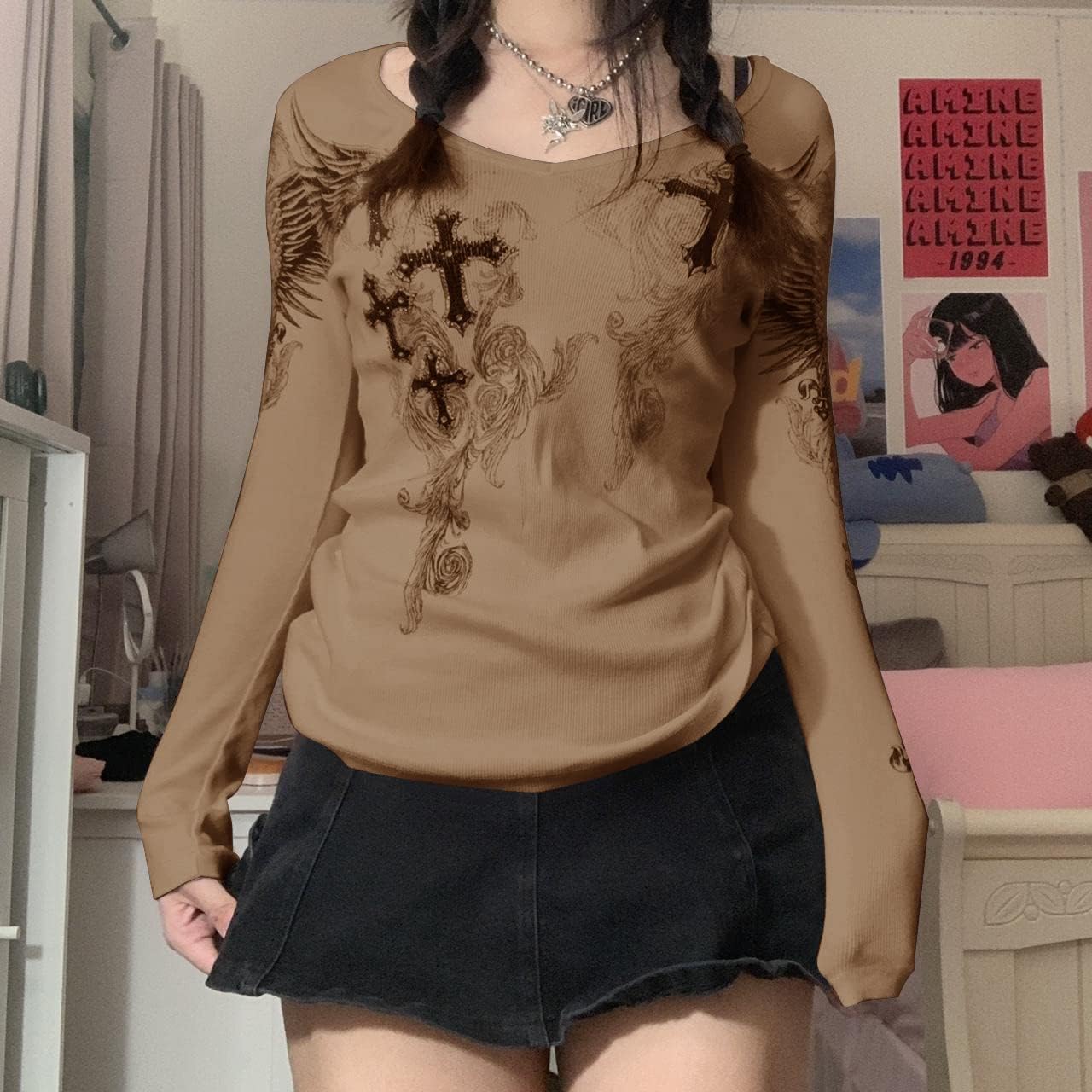 Women Y2K Long Sleeve Patchwork Lace Square Neck Crop Top Tshirt Slim Fit Harajuku Vintage Streetwear Blouse Tops