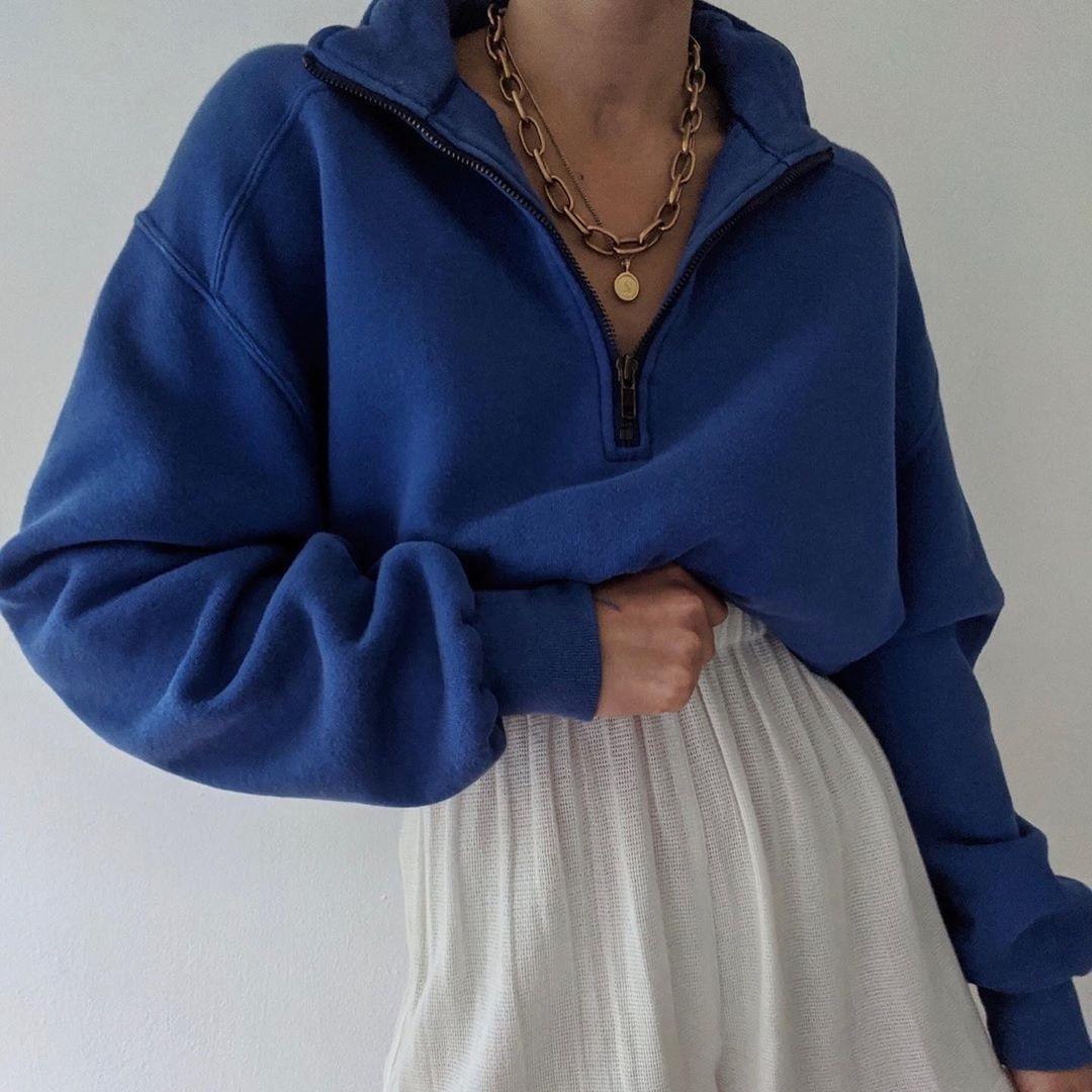 Womens Casual Polo Neck Patchwork Sweatshirt