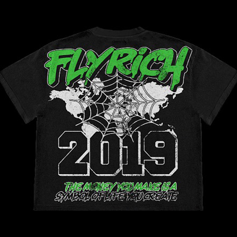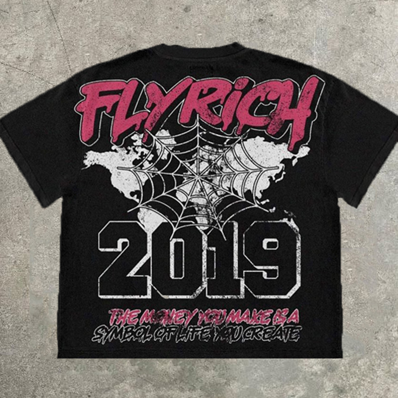 Y2K Fashion Fly Rich Vintage 2019 Graphic Cotton T-Shirt