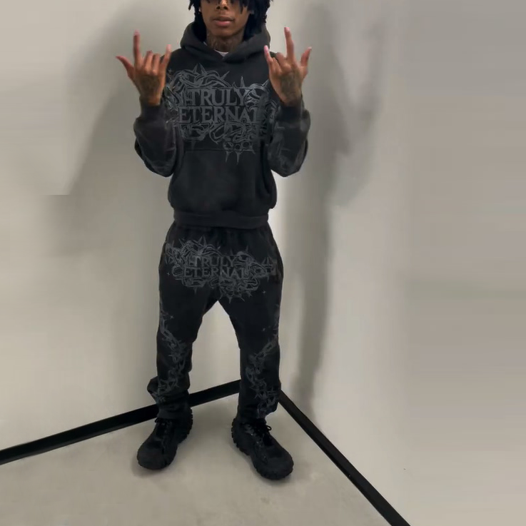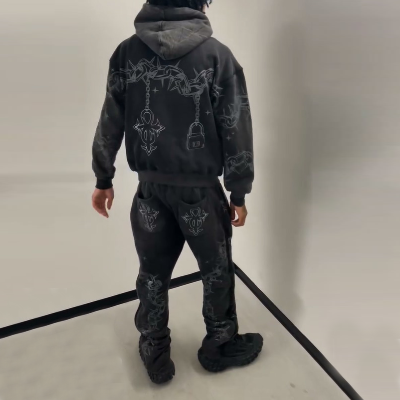 Y2K style printed pattern hoodie set