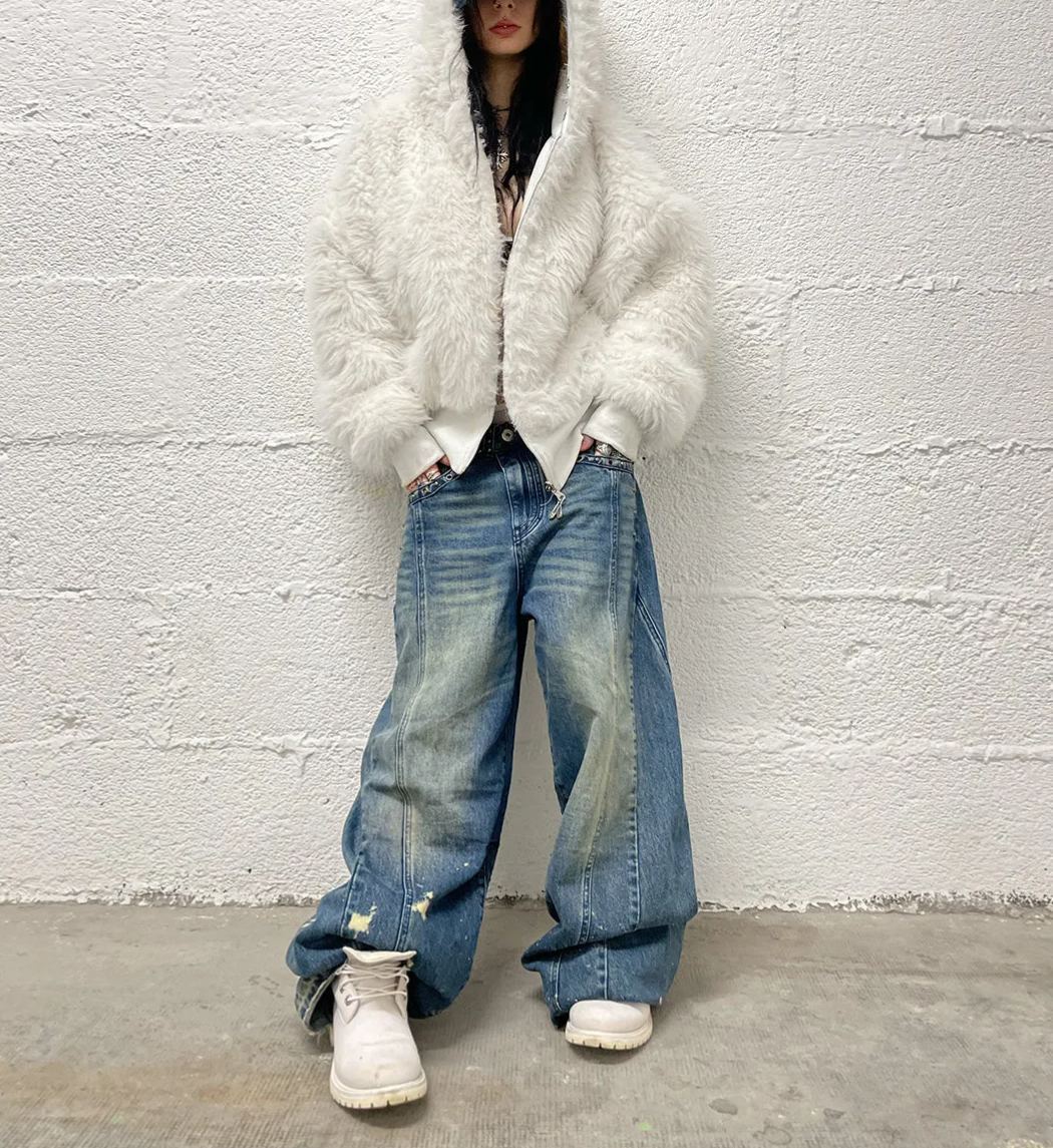 YETI FUR REVERSIBEL ZIP HOODIE JACKET Fluffy Sherpa Jacket