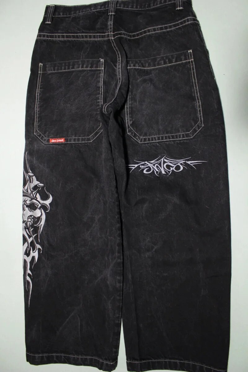 Street Hip-hop Retro Oversized Letter Embroidery Y2K Baggy Jeans Denim Gothic Wide Leg Straight Leg Pants Casual Jeans New