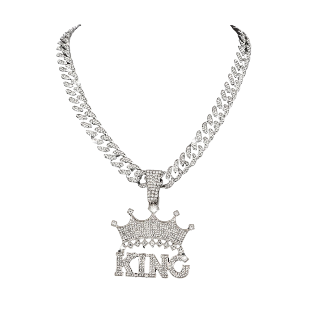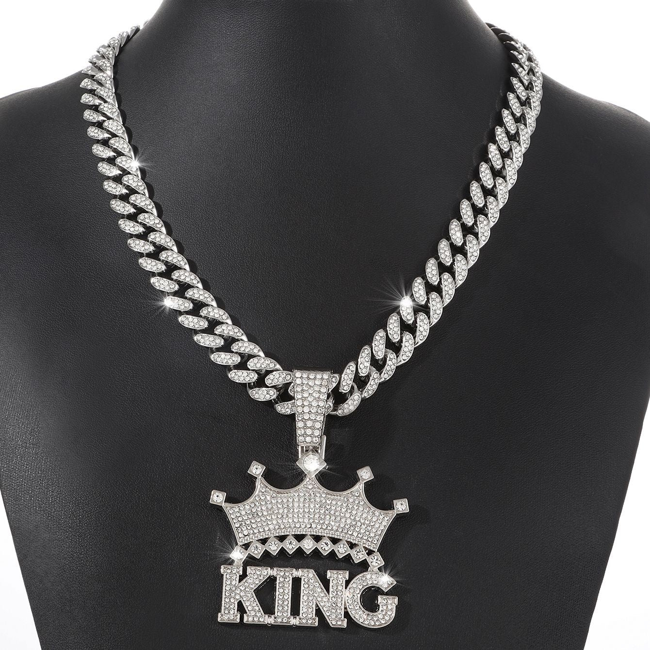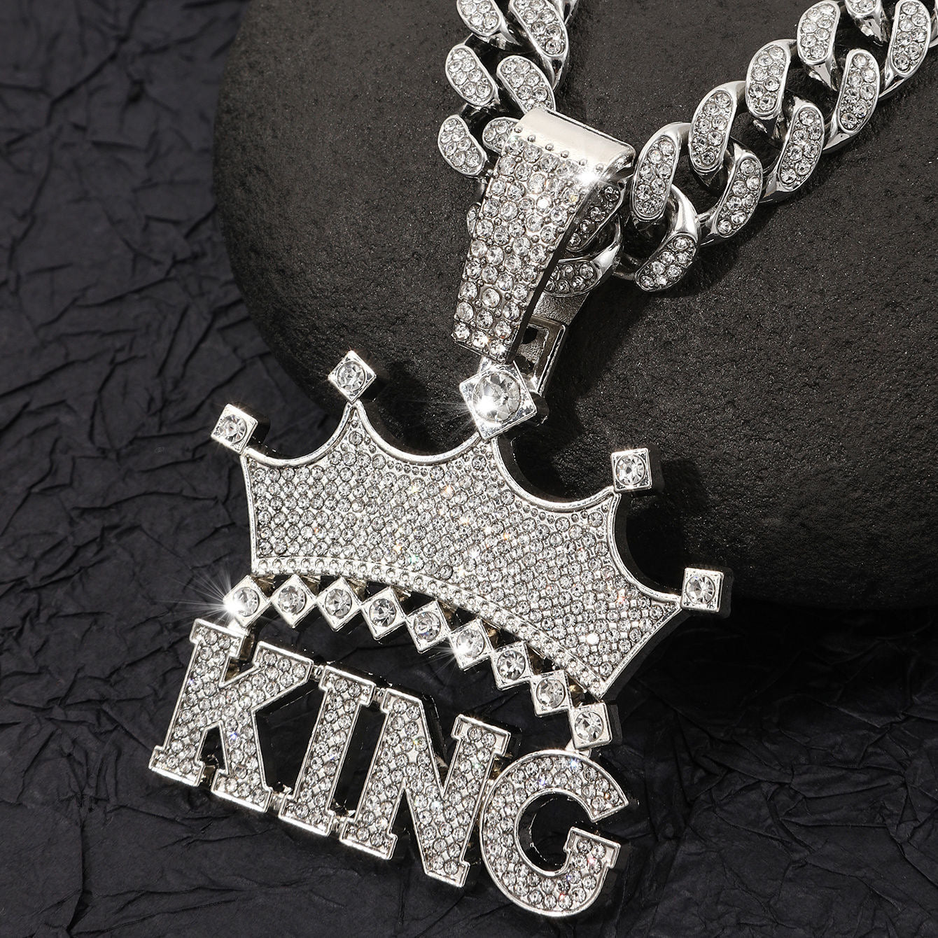 This iced-out KING pendant isn’t just jewelry—it’s your crown.