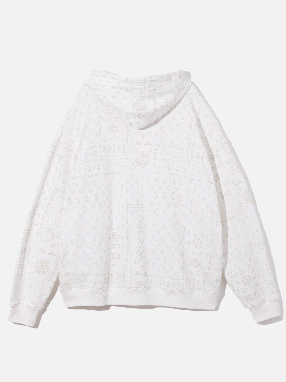 Symbols are crucial in expressing opposition to violence and war. We incorporate anti-war symbols into the design, such as the five-pointed star, the letter "A," and the heart, to convey our pursuit of peace and understanding. The combination of these patterns and elements creates a positive, warm, and inspiring visual effect, aiming to inspire people to contemplate and take action for peace and unity. Additionally, in terms of craftsmanship, we use water-based ink printing techniques to add delicate and rich textures to the pattern, making the arrangement of the symbols more vivid and three-dimensional. This infusion of details and artistic elements adds depth and enhances the overall design.