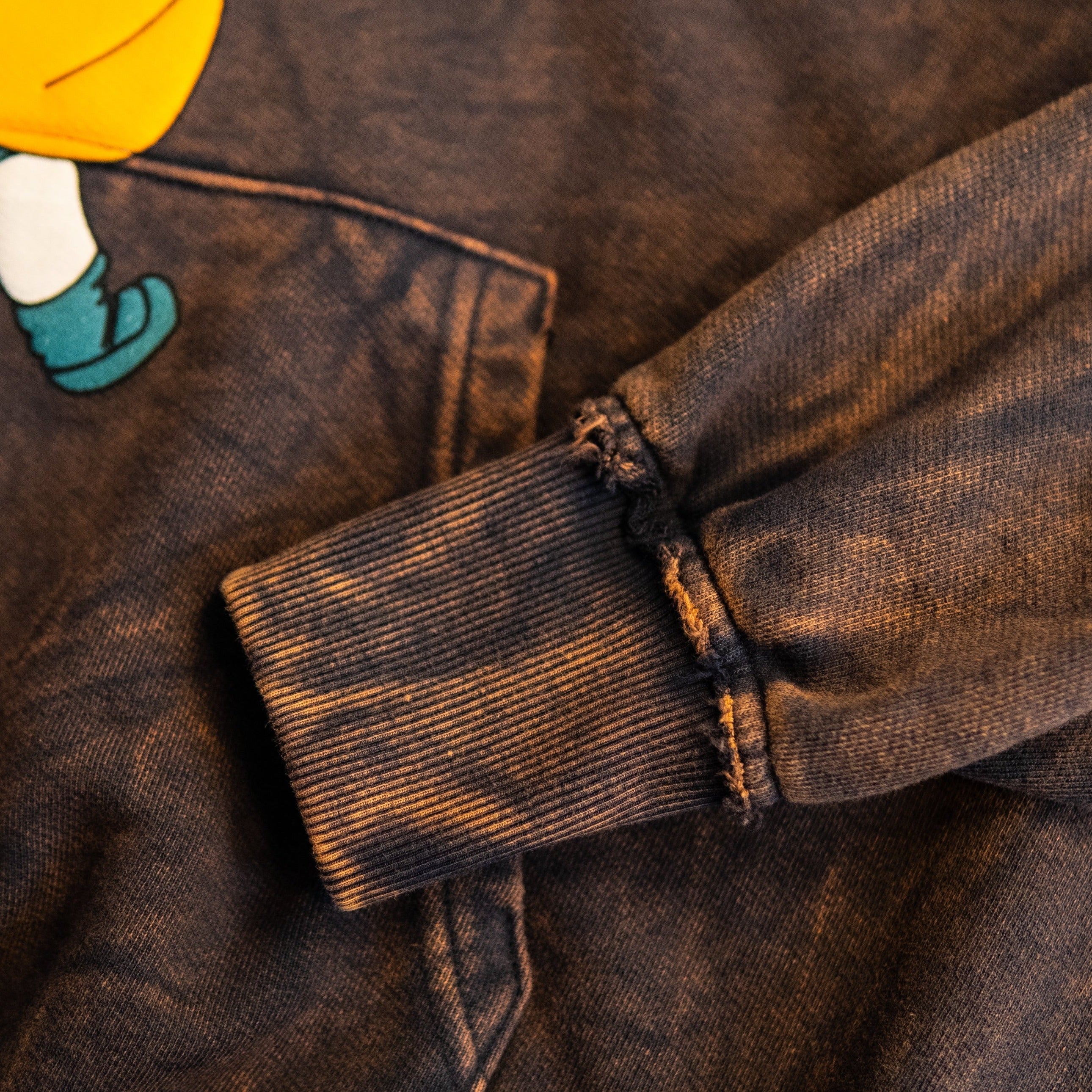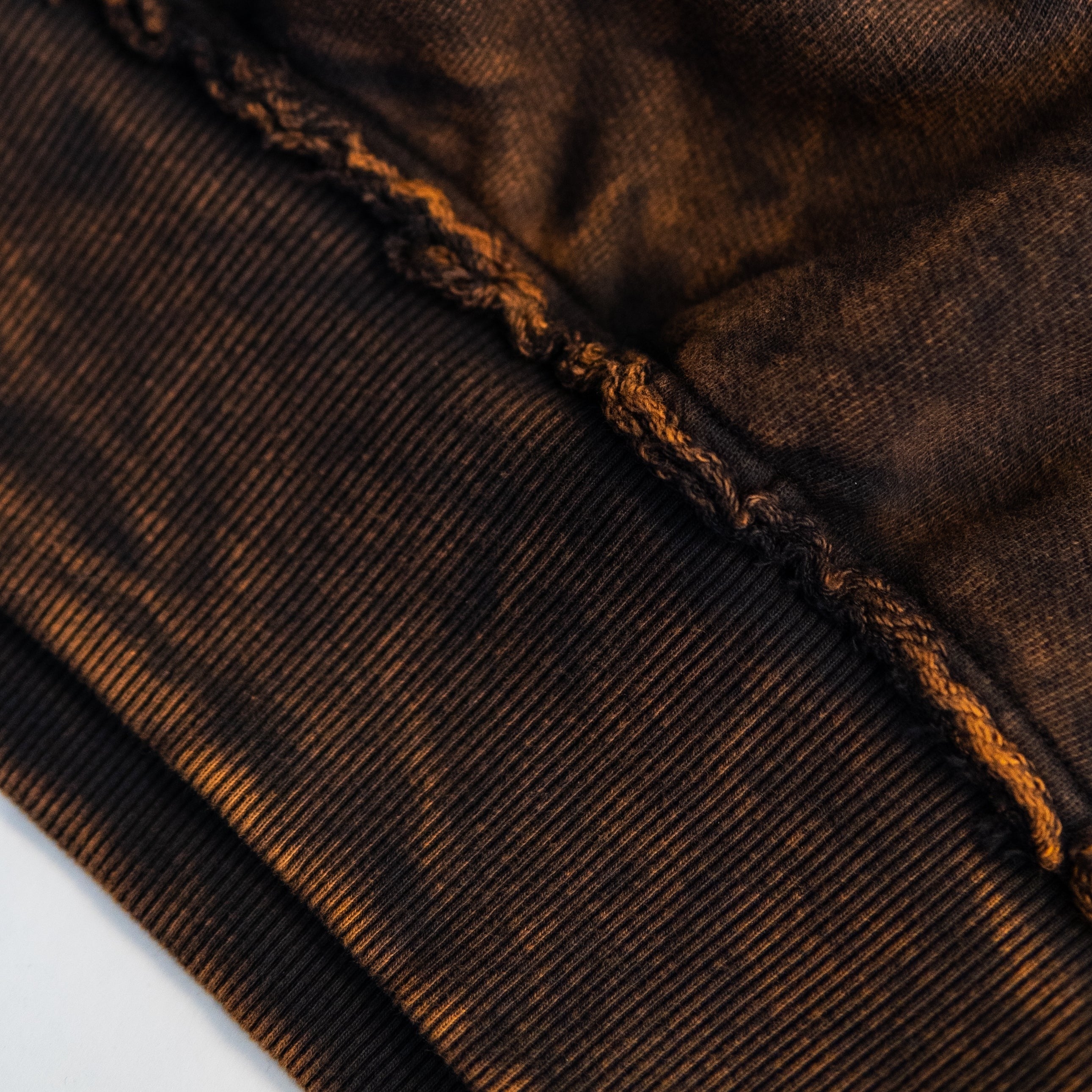 Garment dyed, mineral washed, and pre-shrunk in Los Angeles. Slightly cropped bottom hem, and oversized hood. Ribbed cuffs and band featuring a raw edge finish. Puff printed graphic. Custom knit in Los Angeles after months of testing and development.