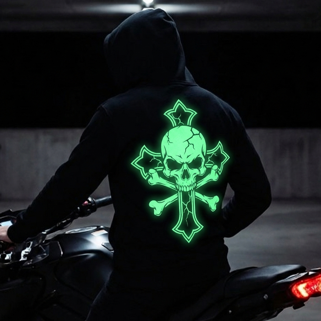 Glow in the Dark Skull Hoodie Cotton Blend Men's Streetwear Fashion Pullover
