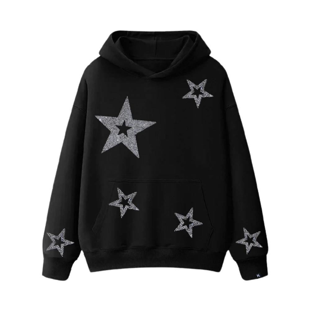 Let your style shine through the darkness. The Starlit Shadows Hoodie takes a bold step into the spotlight with glimmering rhinestone stars scattered across deep navy cotton. It’s not just comfort—it’s a cosmic statement. Whether you're moving through the city or chilling under the night sky, this hoodie catches the light and turns heads. Designed for those who don't just follow trends, but illuminate their own path.