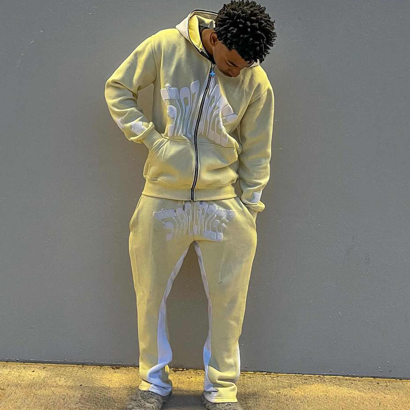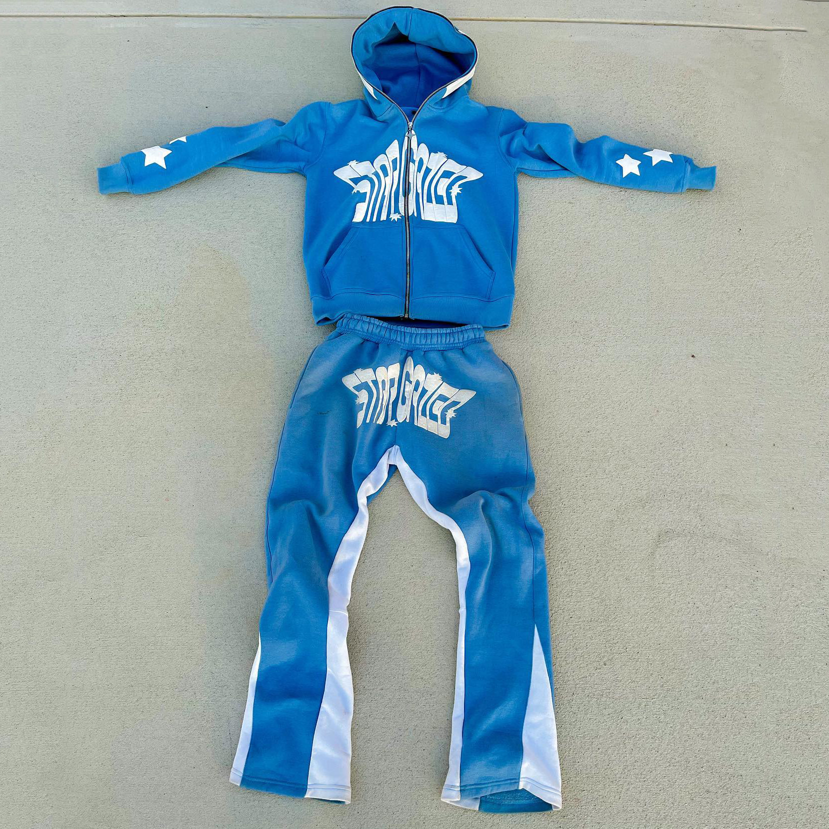 Lucky puff printing full zip hoodie trousers two piece set