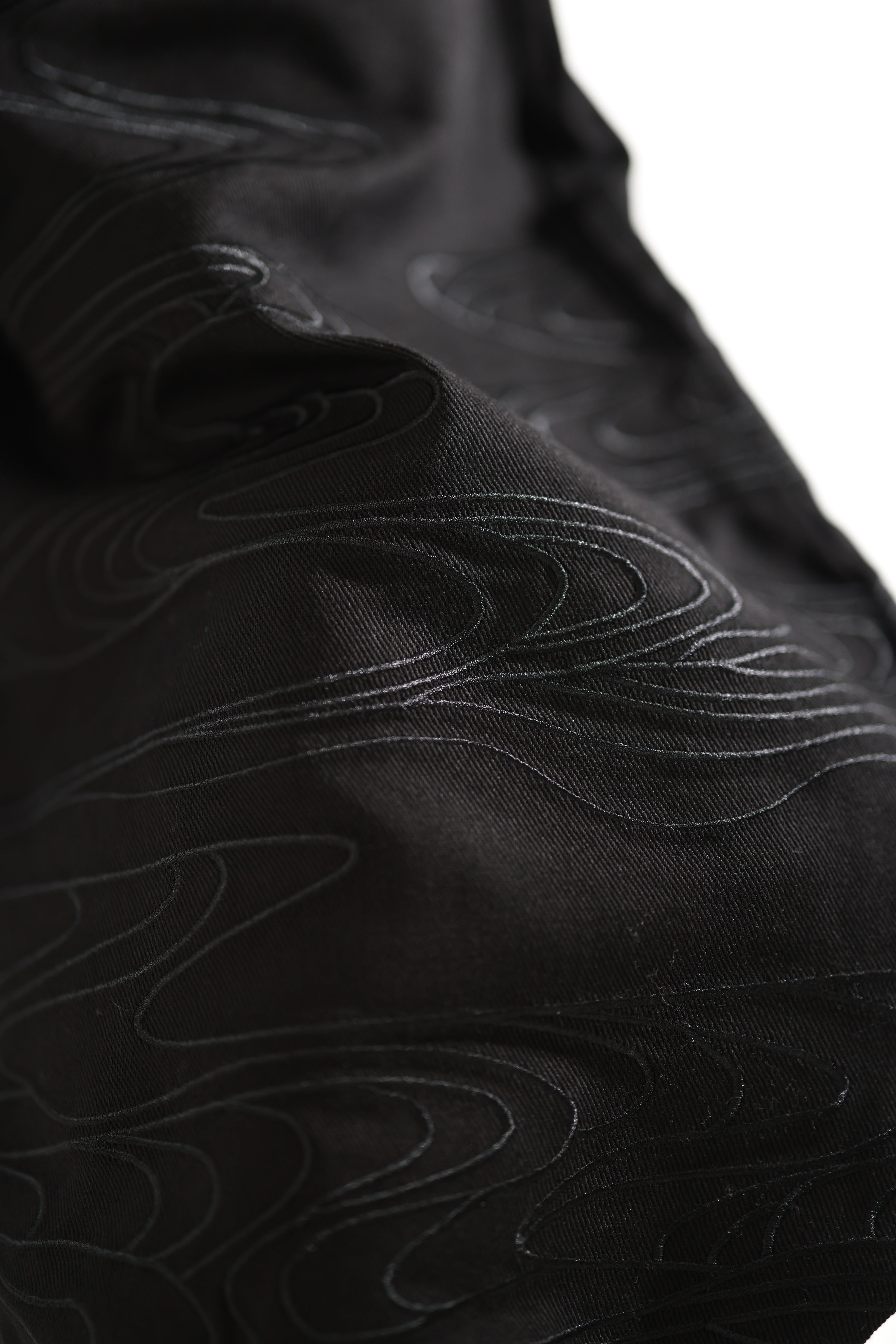 All parts of the cursed collection feature some of the most unique and detailed embroidery, knit & denim designs we have ever made. The fabric is made from a very high quality denim material. The cursed energy embroidery is very subtle and matches with the new denim jackets from the Cursed Collection Part VII. The embroidery add a unique touch to the design and makes it very interesting for casual outfits or cosplays. The embroidery has been specially modified so that it is not itchy on the skin and blends well with the denim fabric. The design has the same shape as the pants sorcerers were wearing and is perfect to casually wear on the street. It is supposed to make you comfortable while standing out in a positive way. The pants also have pockets with high End Metal Zippers in the front and elastic in the back for a comfortable fit. The denim belt seen in the picture comes with the pants as a free accessory. If you want the pants to be more subtle, you can take it out and replace it with a regular belt.