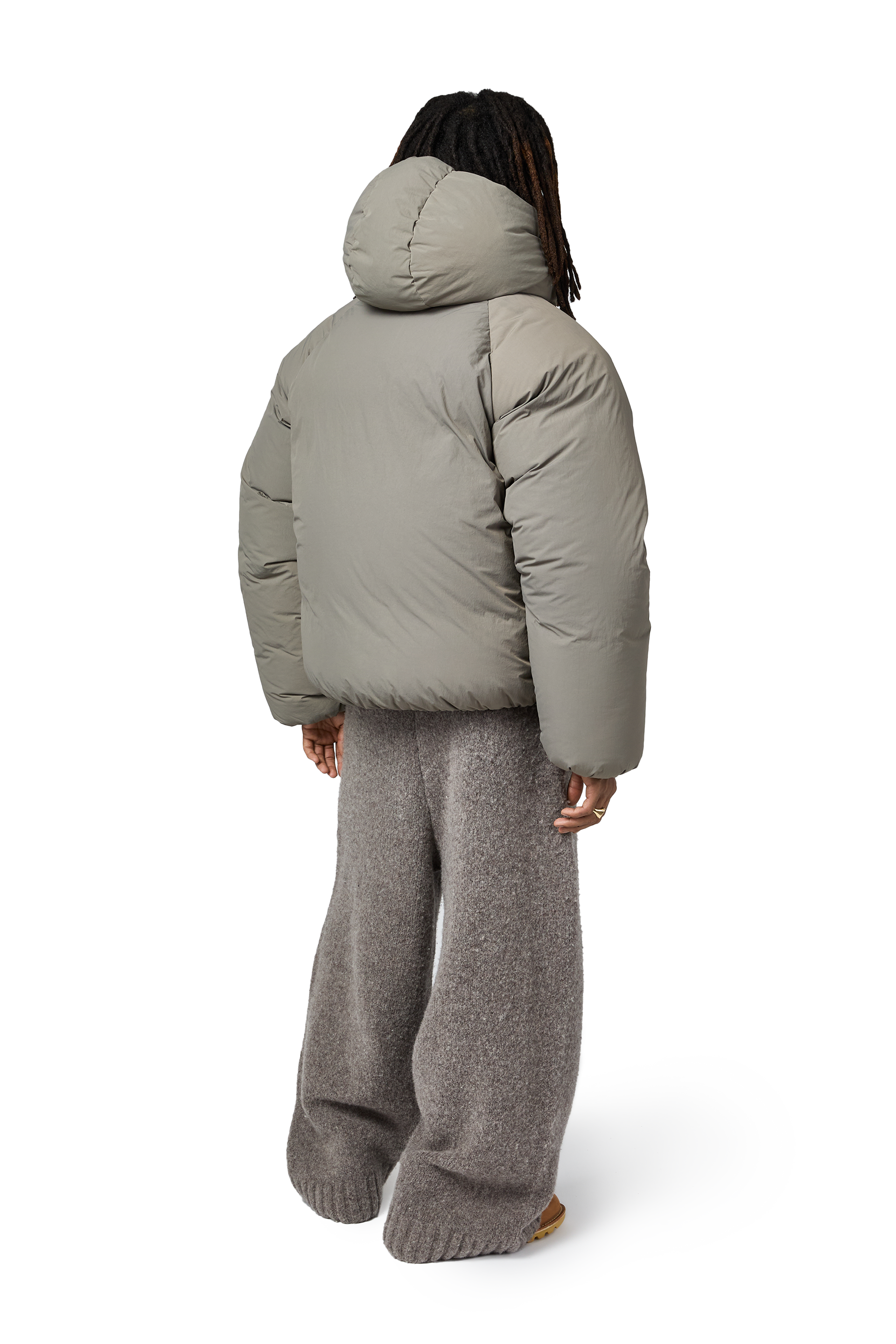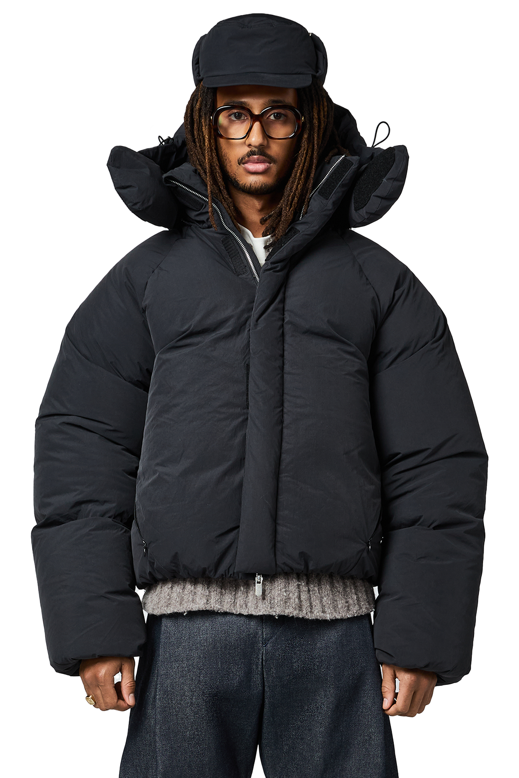 The Space Coat is crafted from luxury crinkled nylon with a textured hand feel, detailed with our iconic Space Hood featuring adjustable drawstrings. Best known for it's voluminous round silhouette, detachable hood and cropped fit. Complete with a centre double zipper closure, concealed front pockets and hidden elasticated waist band at hem. This coat can be taken on your adventures and excursions, comfortably withstanding sub-zero temperatures and cold weather conditions.