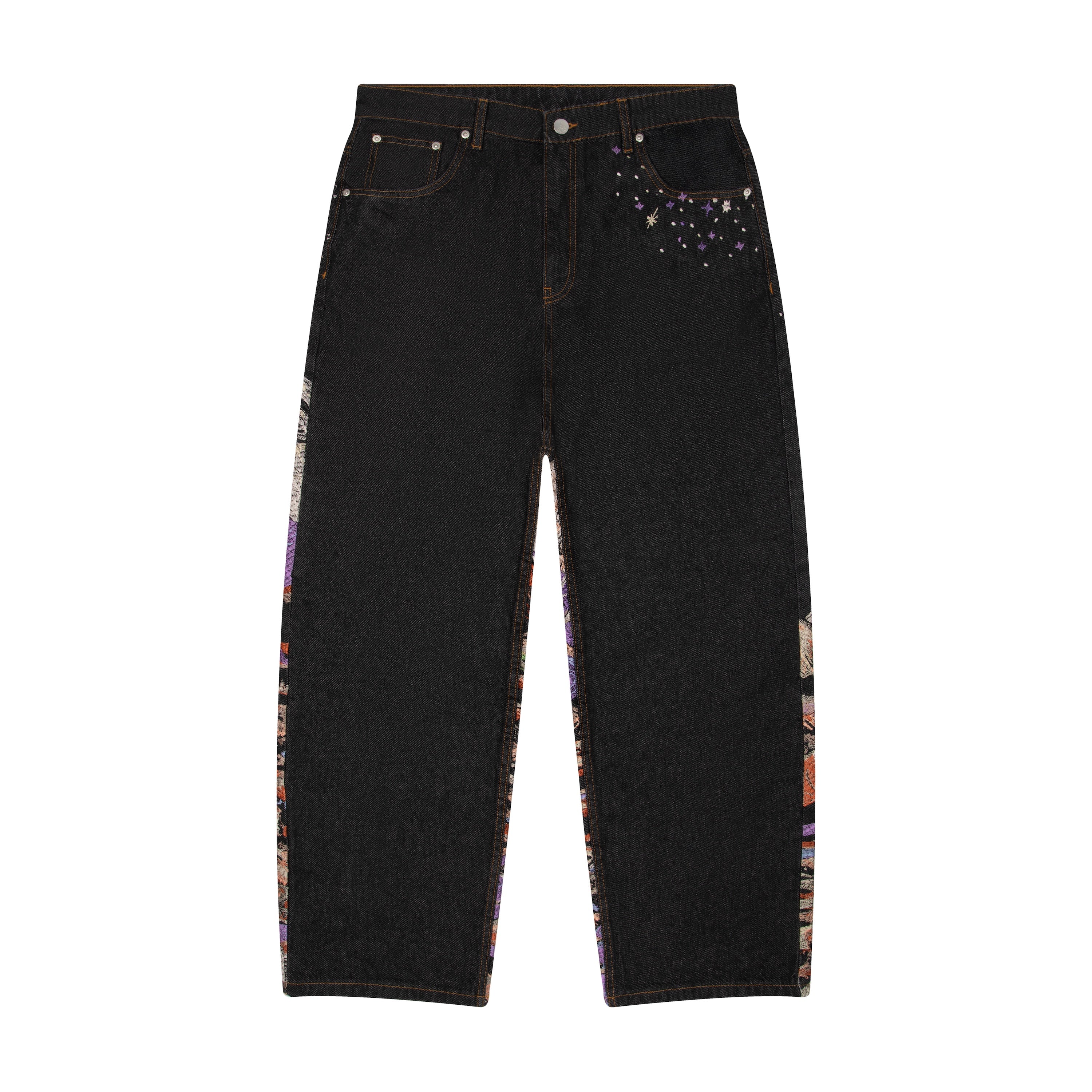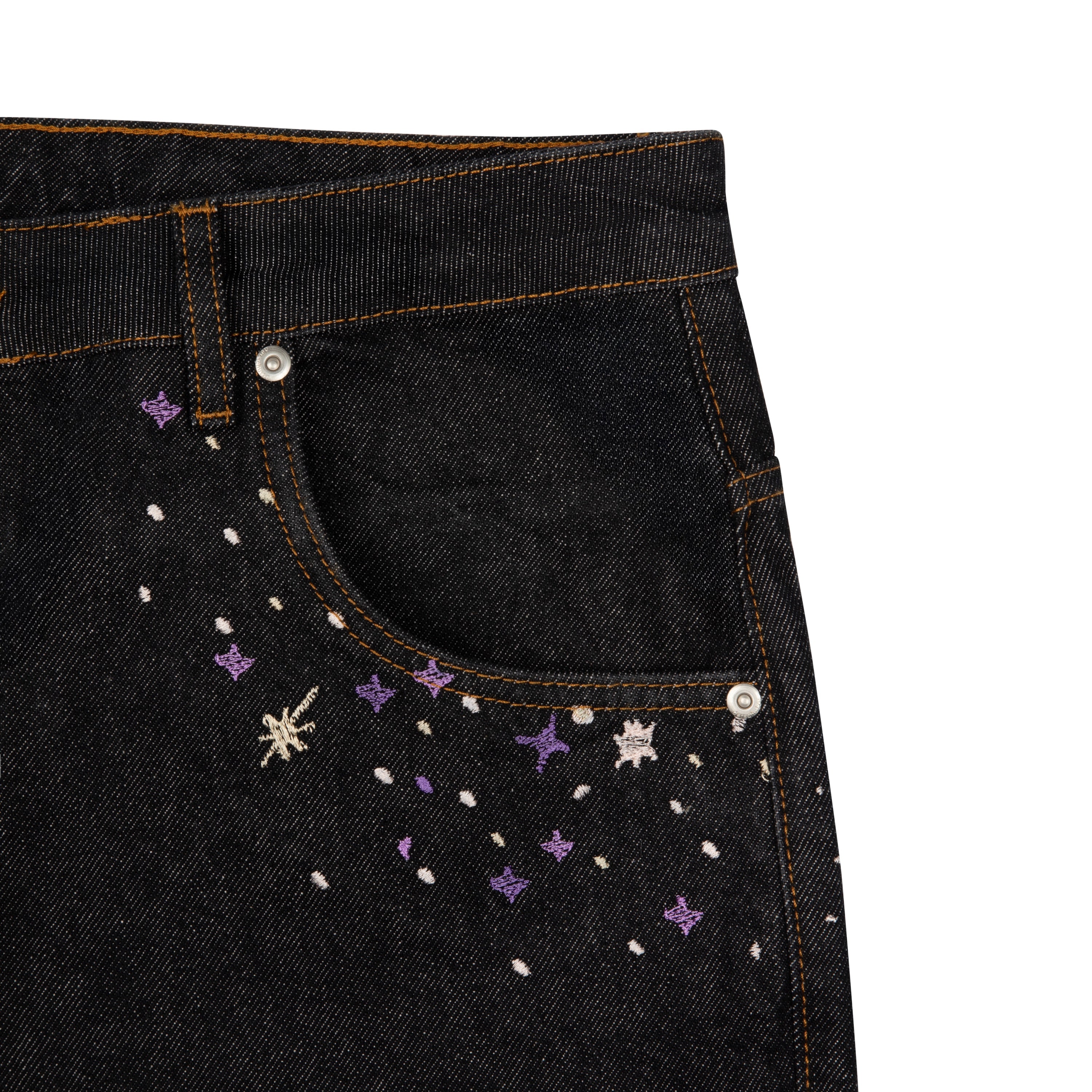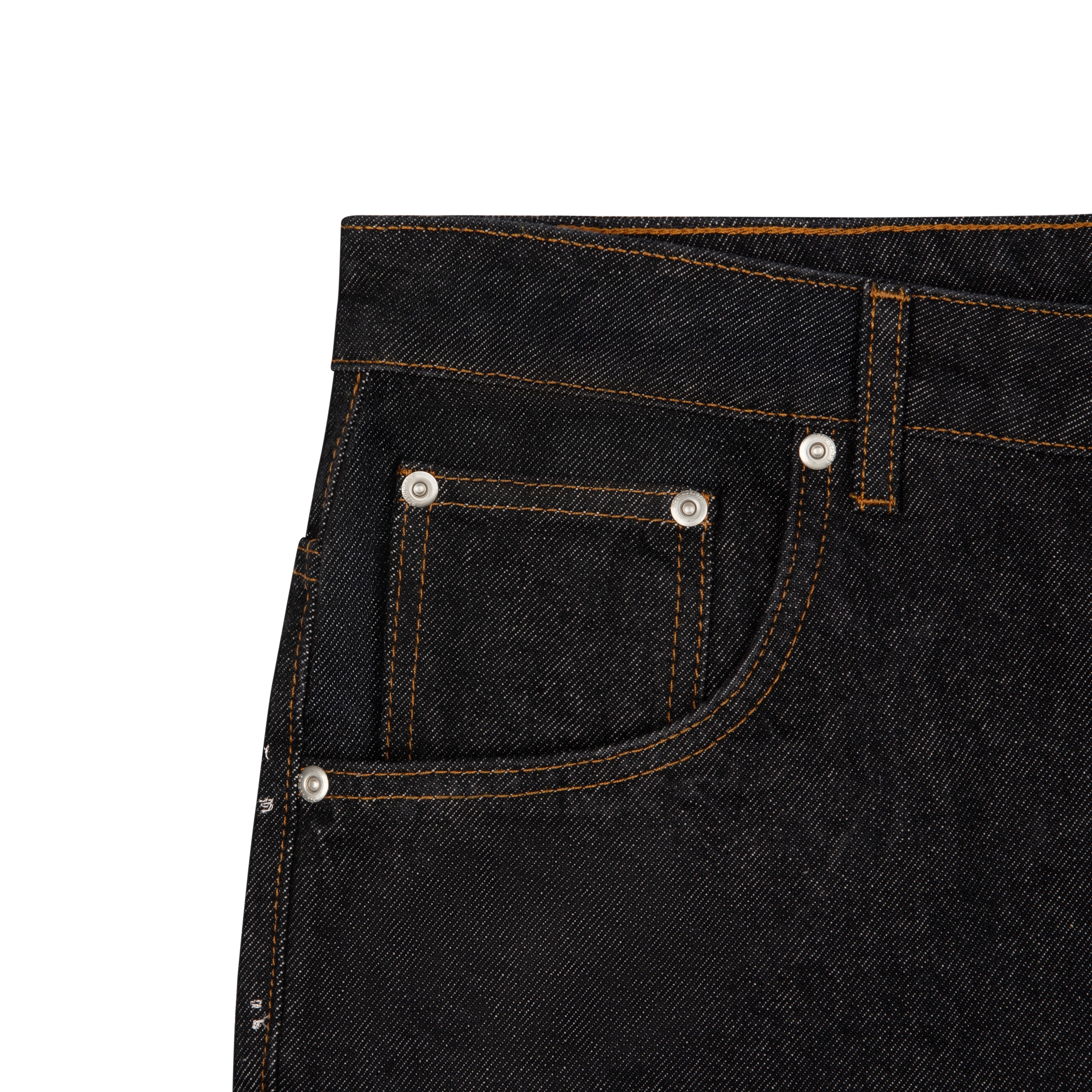 14,5oz denim / 100% cotton / embroidery on front and back / embroidered leather patch / wash inside out / straight fit / fits true to size