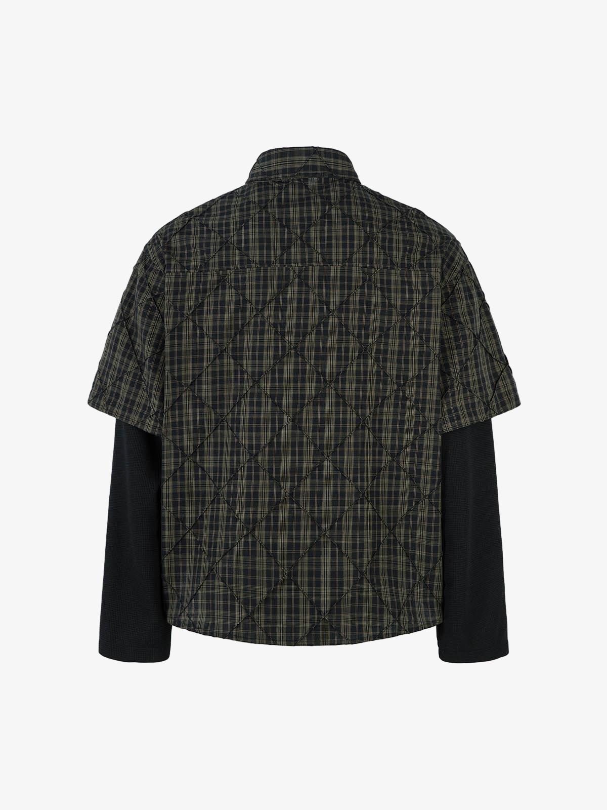 Heavy Plaid Pleated Striped Faux Two-Piece Polo Shirt