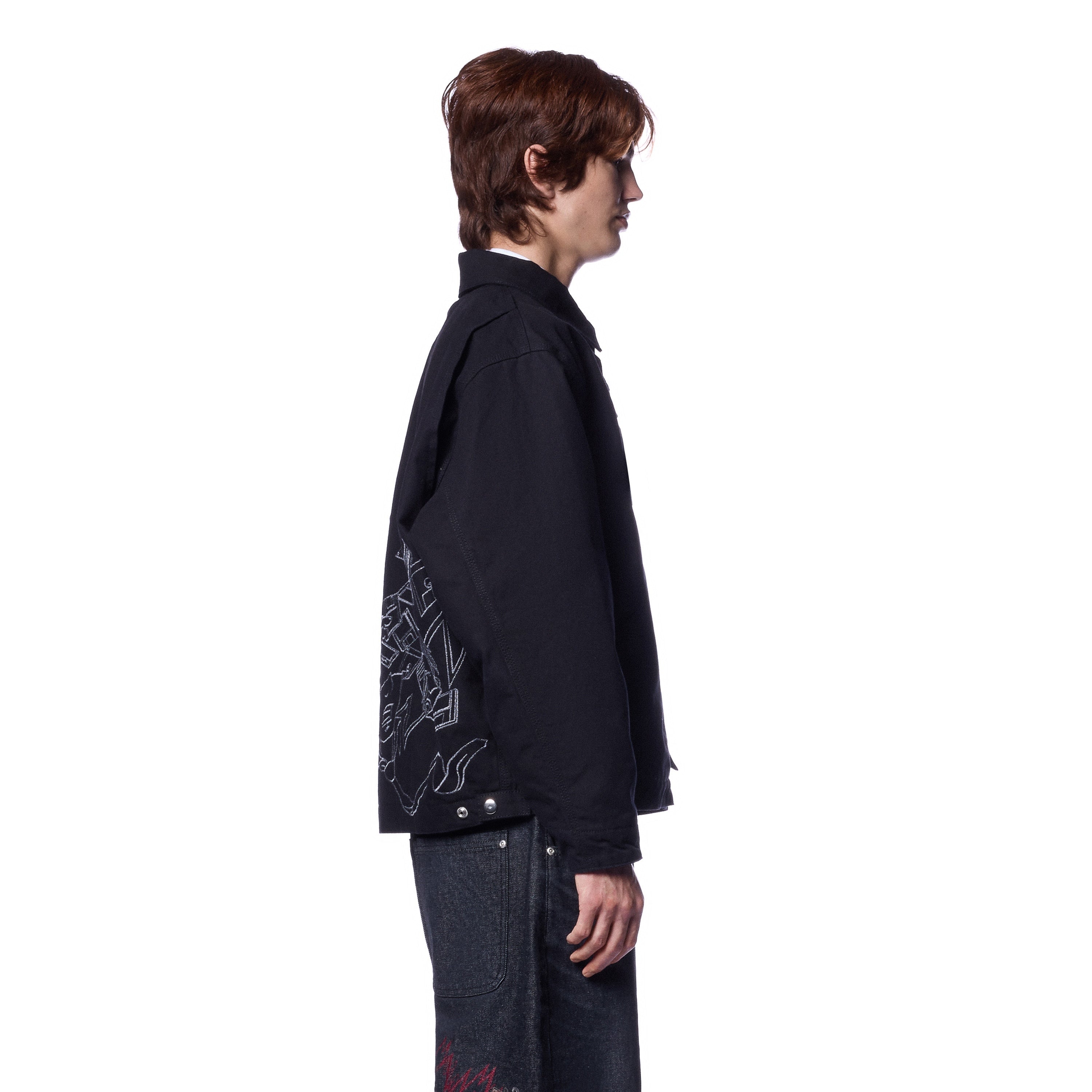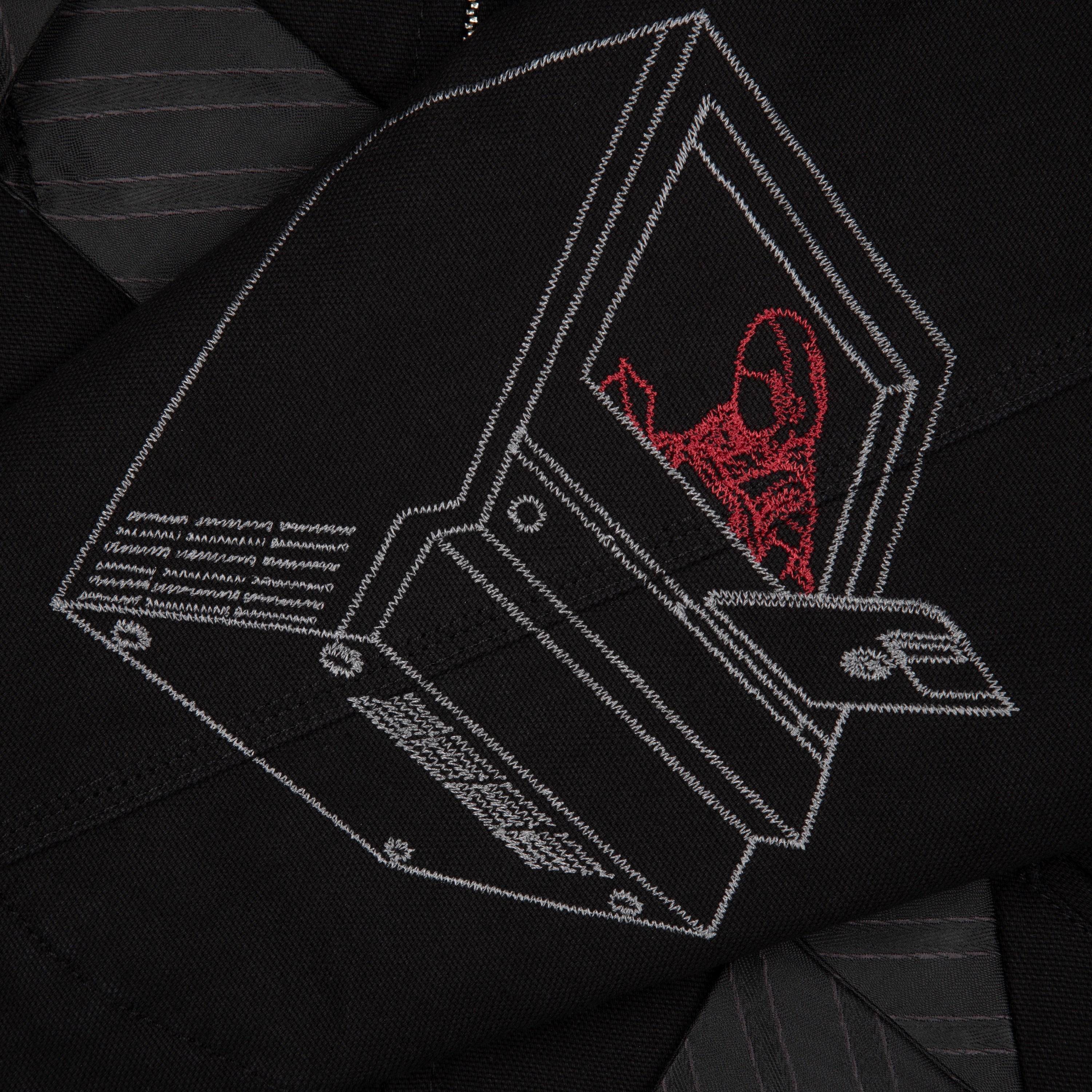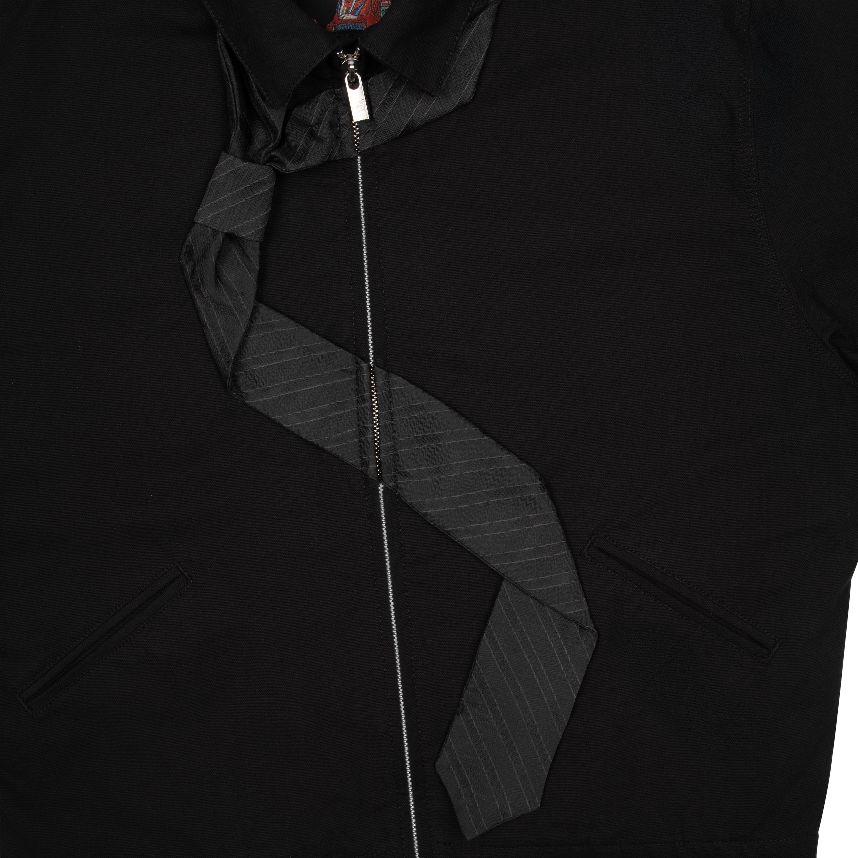 11,3oz canvas fabric / 100% cotton / embroidered tie patch from tie fabric on front / embroidery on back / capitone polyester lining / pocket inside / with YKK zipper / custom buttons / fits true to size
