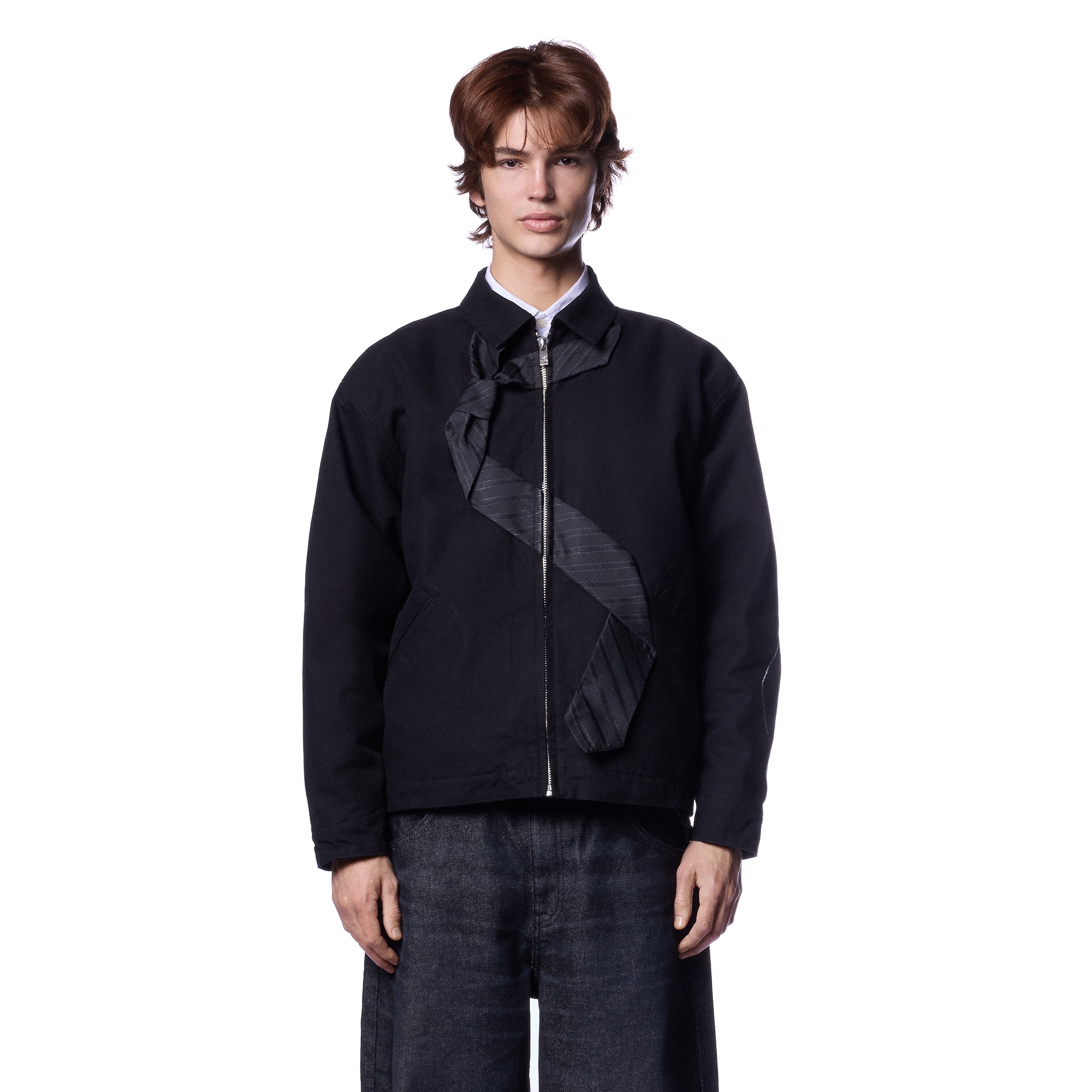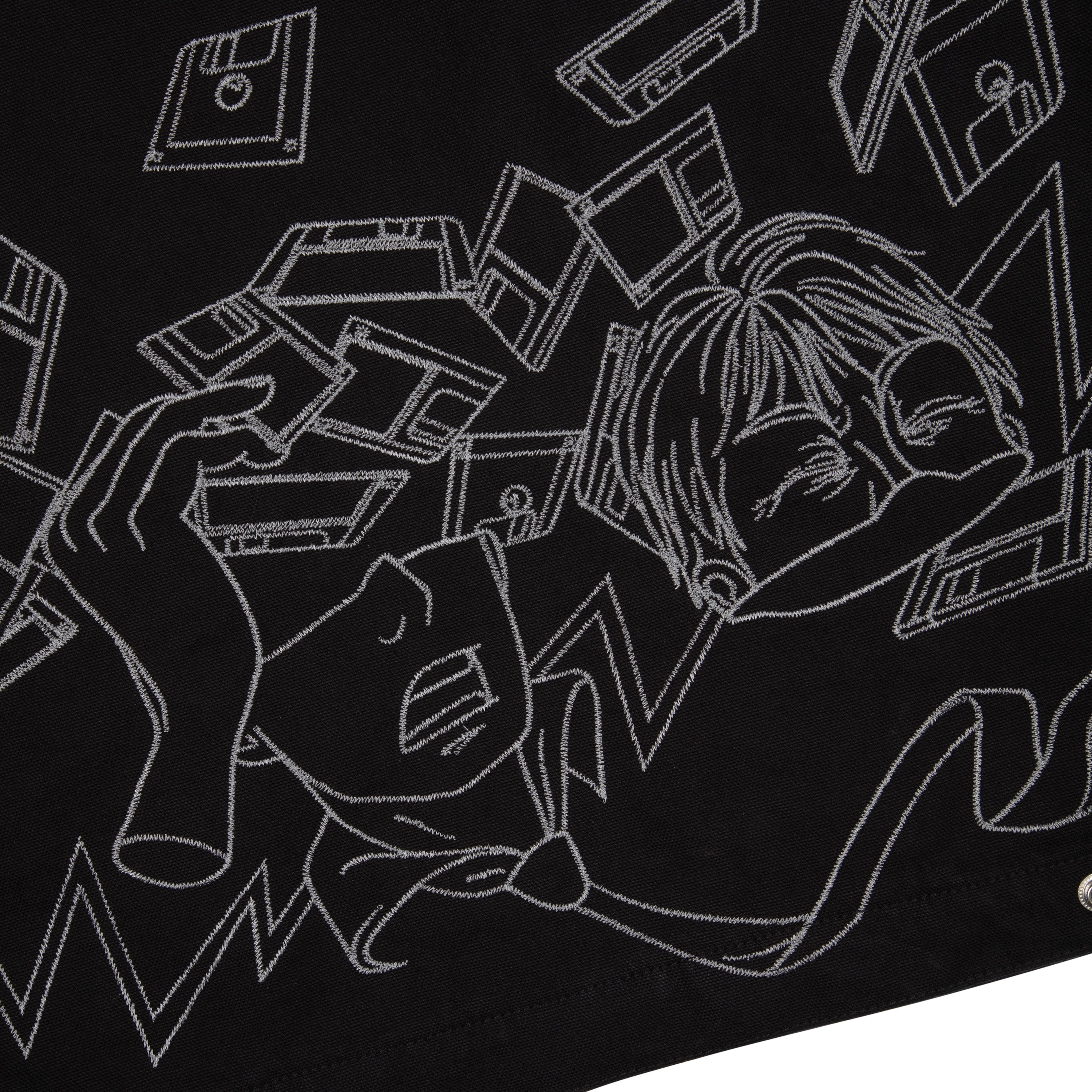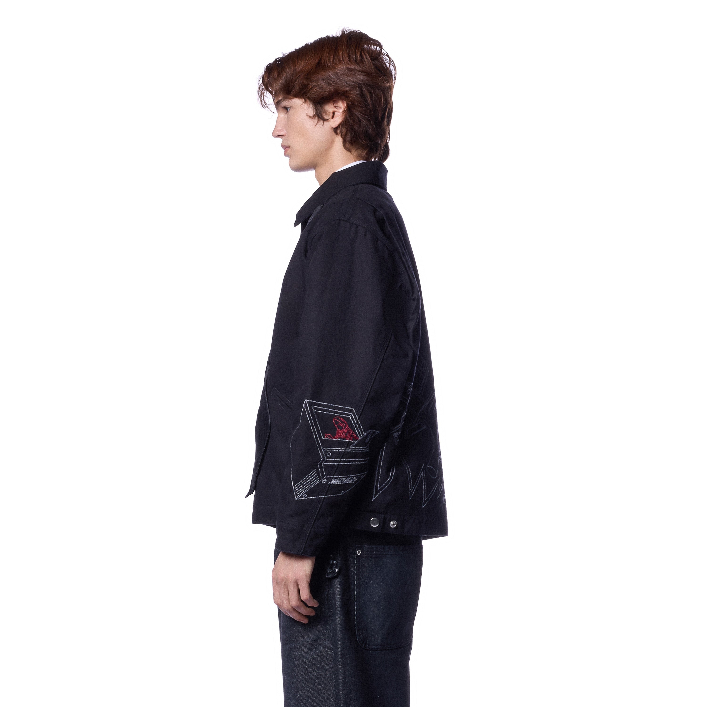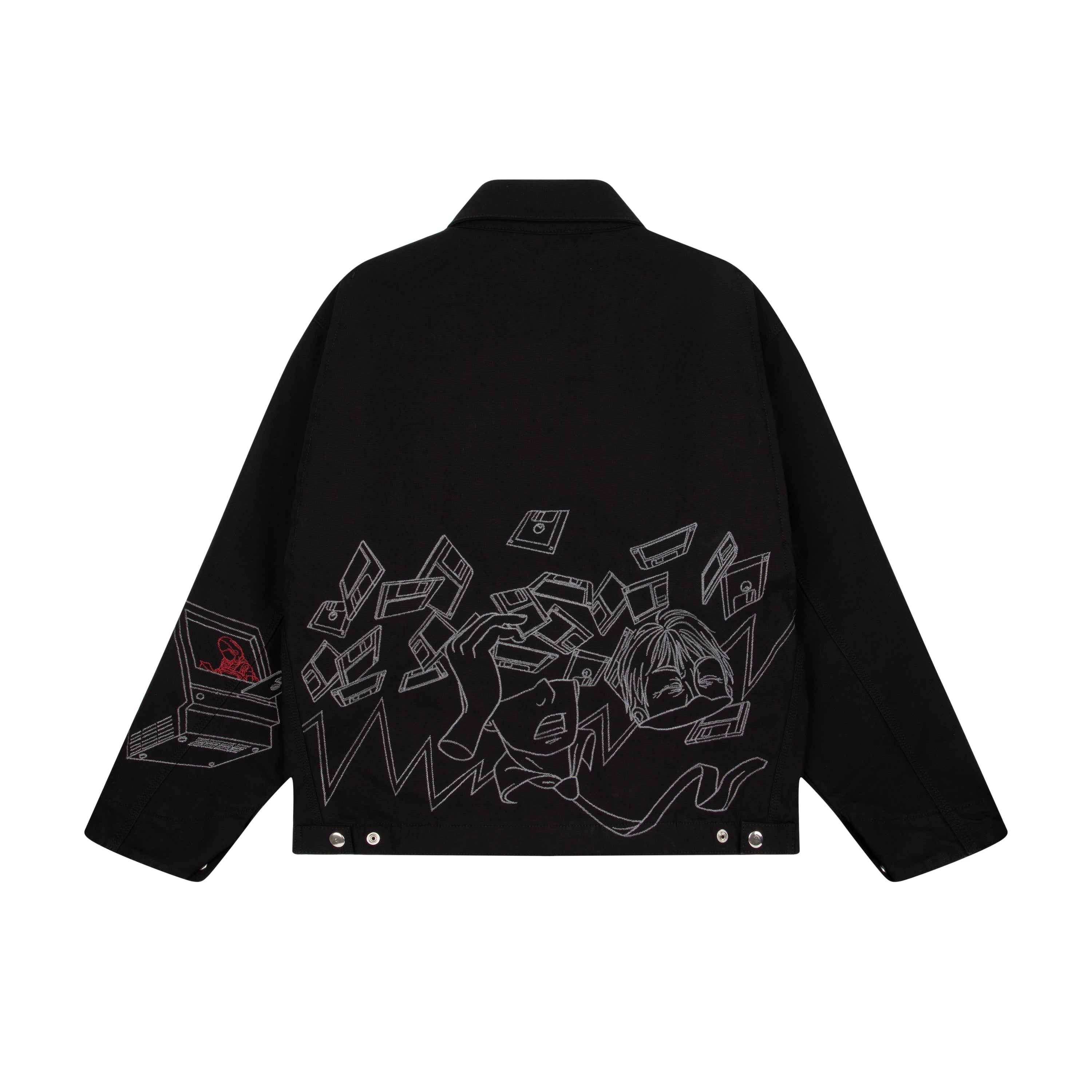 11,3oz canvas fabric / 100% cotton / embroidered tie patch from tie fabric on front / embroidery on back / capitone polyester lining / pocket inside / with YKK zipper / custom buttons / fits true to size